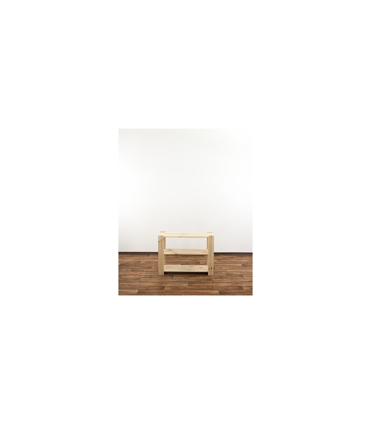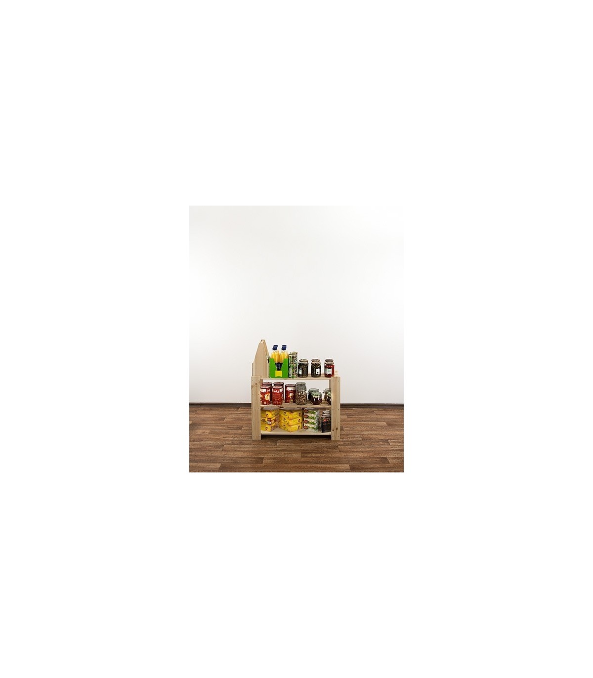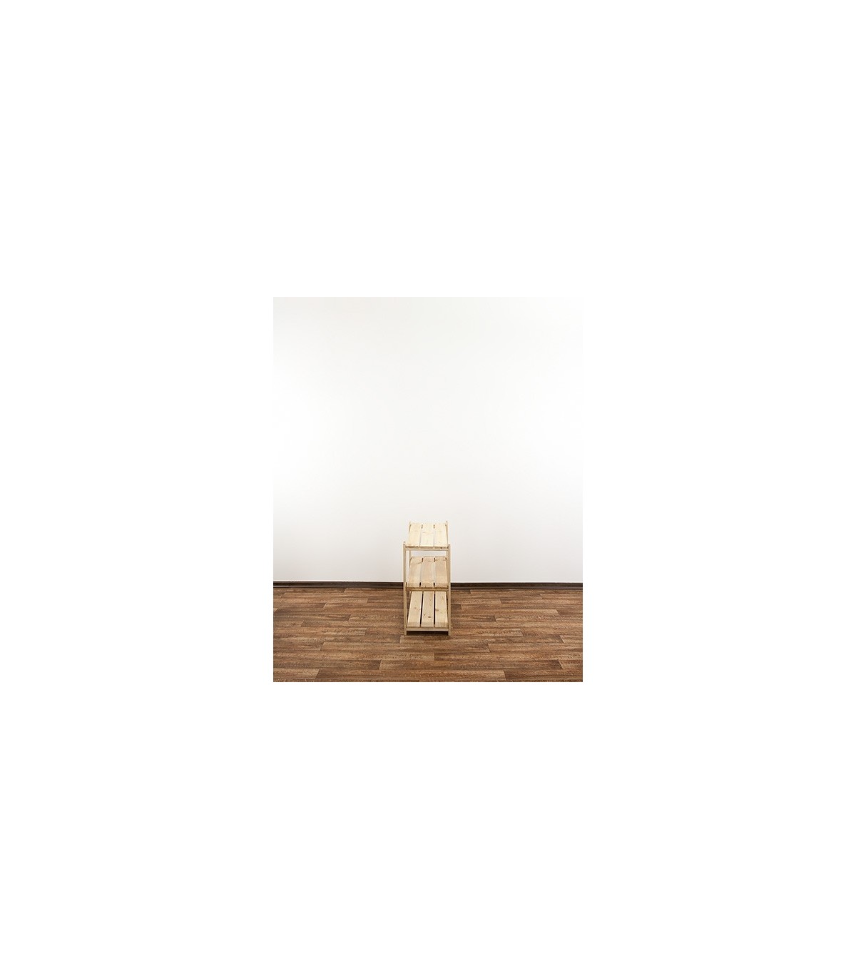 Wysoki na 64 cm, trzypiętrowy regalik o szerokości 80 i głębokości 30 cm. Boczne filary stojaka wyposażone są w rezerwowe otwory montażowe, umożliwiające regulację rozpiętości poziomów oraz instalowanie dodatkowych półek ażurowych lub półek na wino.