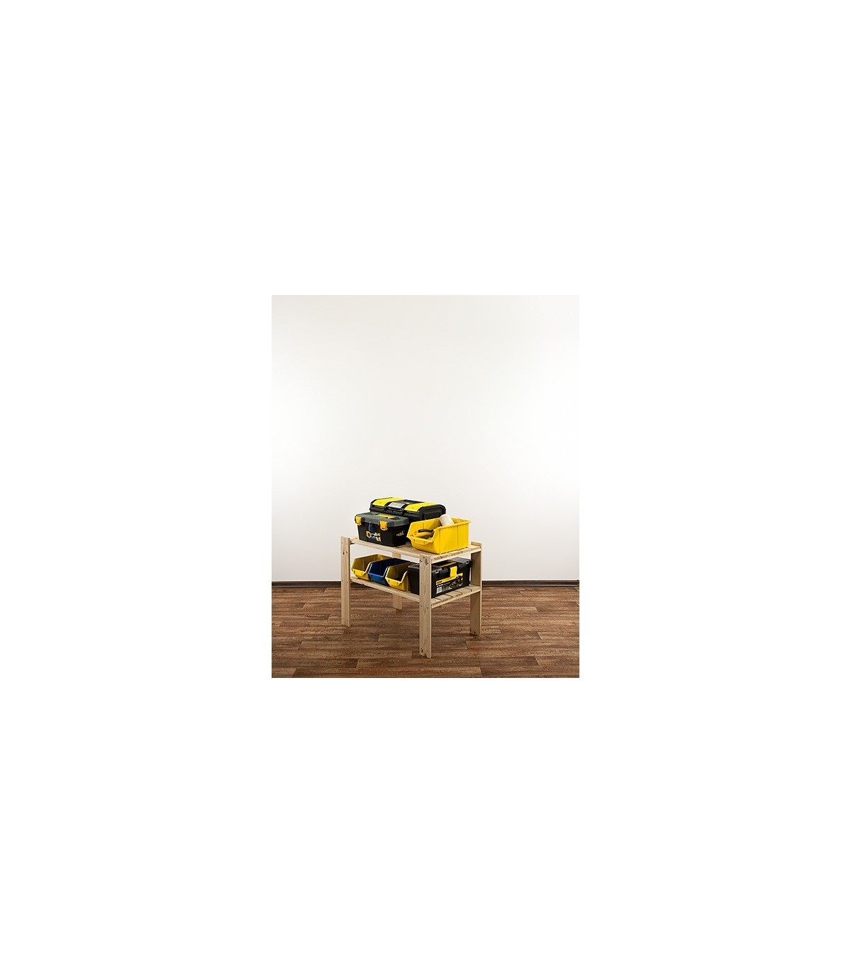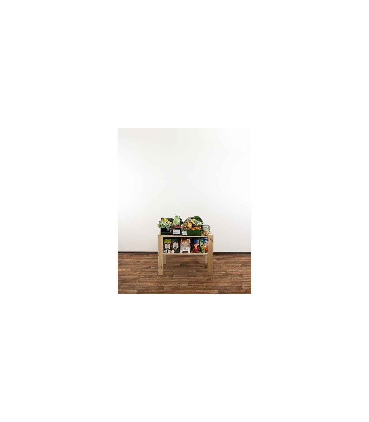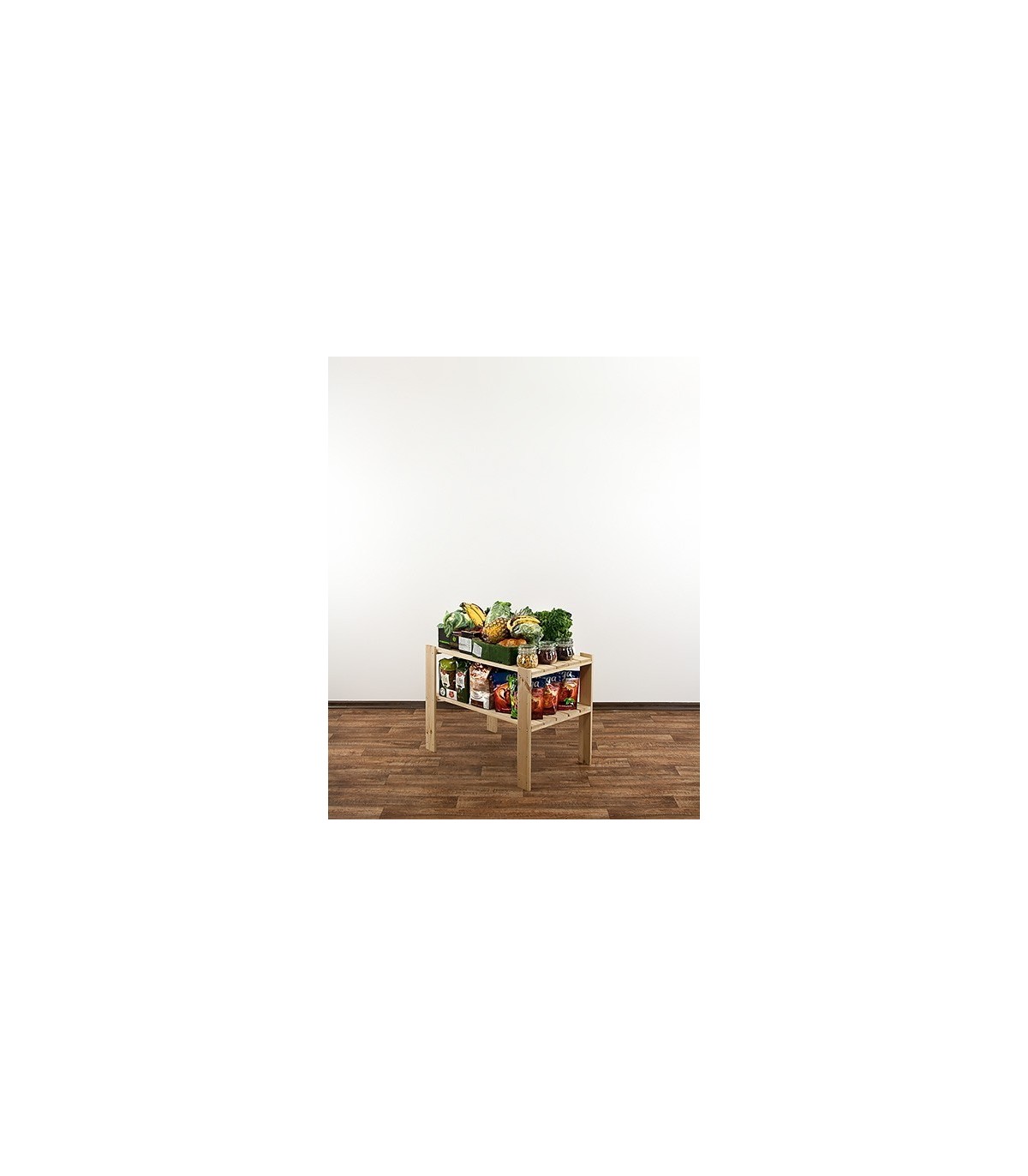 Niska szafka dwupiętrowa o szerokości 80, głębokości 50 i wysokości 64 cm. Samodzielny stojak ażurowy lub dostawka do wysokich regałów modułowych ze zbioru MAXI. Półki o nośności 120 kg.