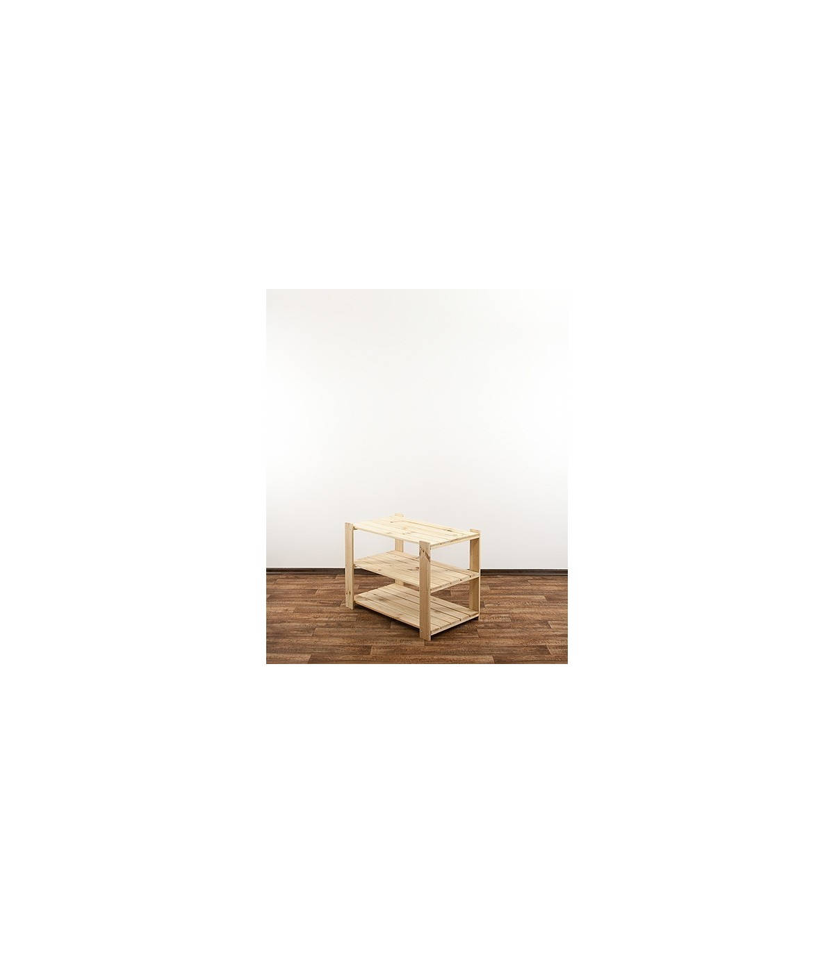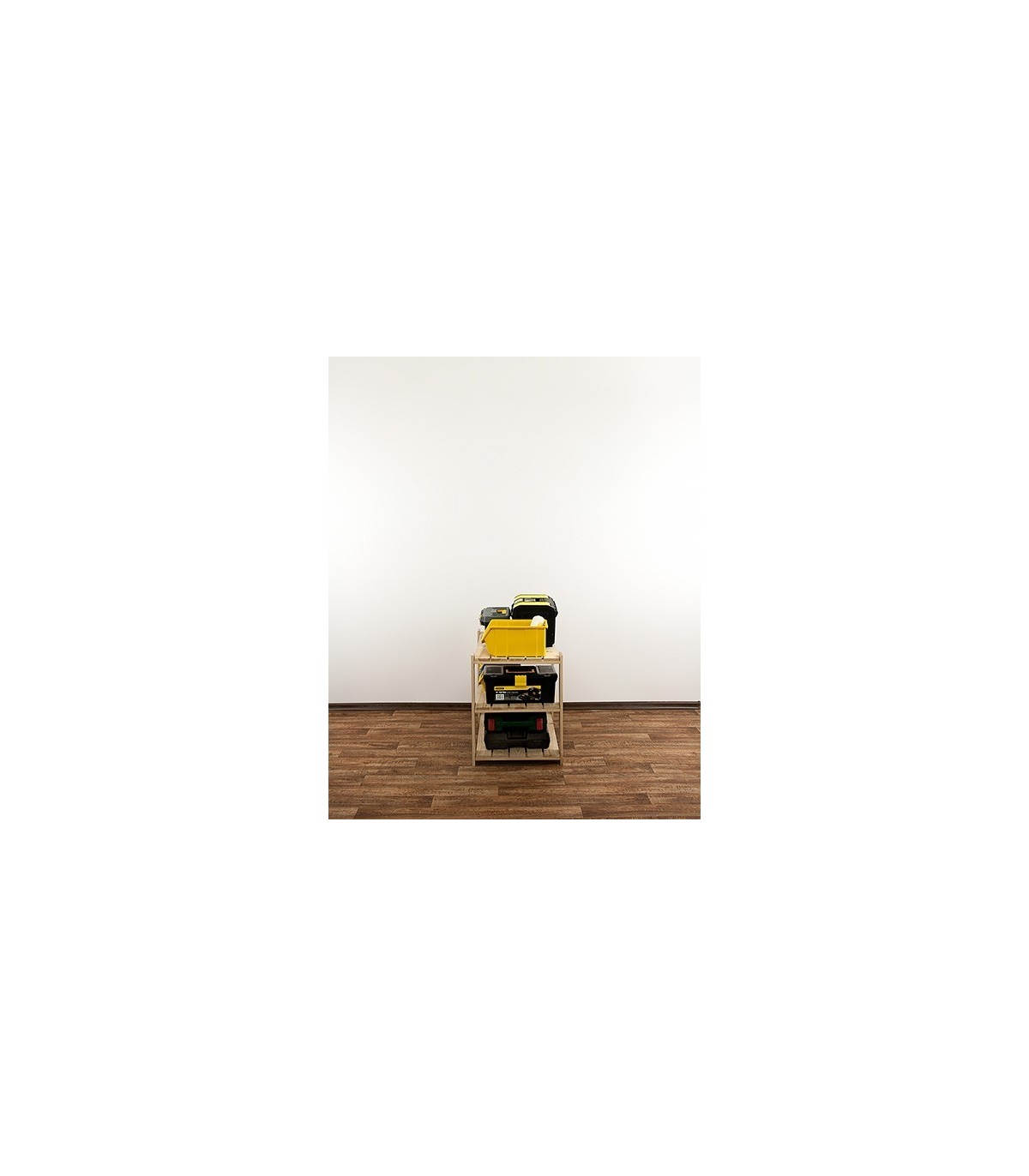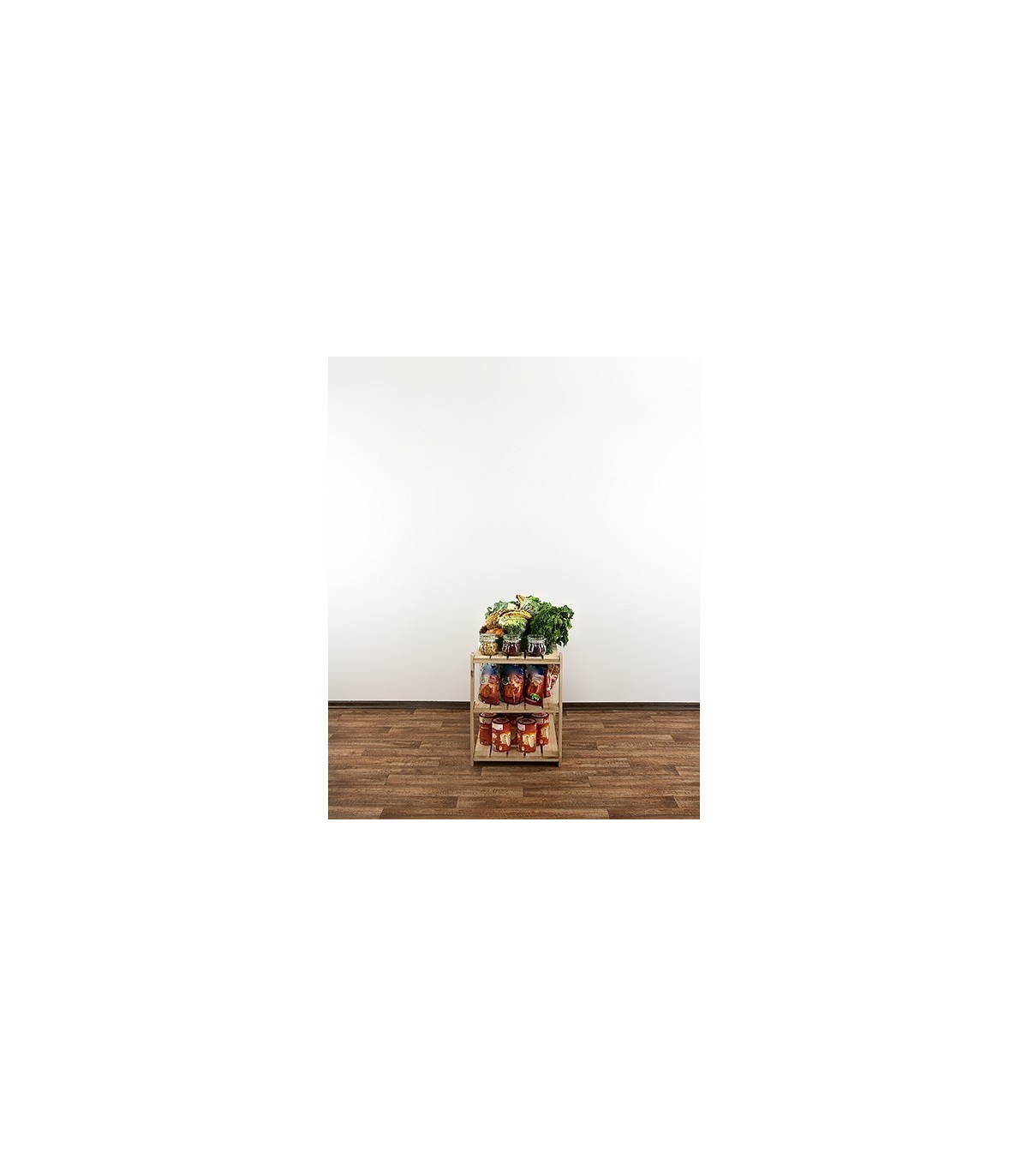 Trzypiętrowa szafka magazynowa o wysokości 64, szerokości 80 i głębokości 50 cm. Blaty z nośnością 120 kg. Samodzielny stojak lub nadstawka do wyższych wariantów z kolekcji MAXI M. Rezerwowe otwory montażowe na nogach, pozwalają na zainstalowanie dodatkowych półek, np platform do leżakowania wina oraz dobór wysokości poziomów.