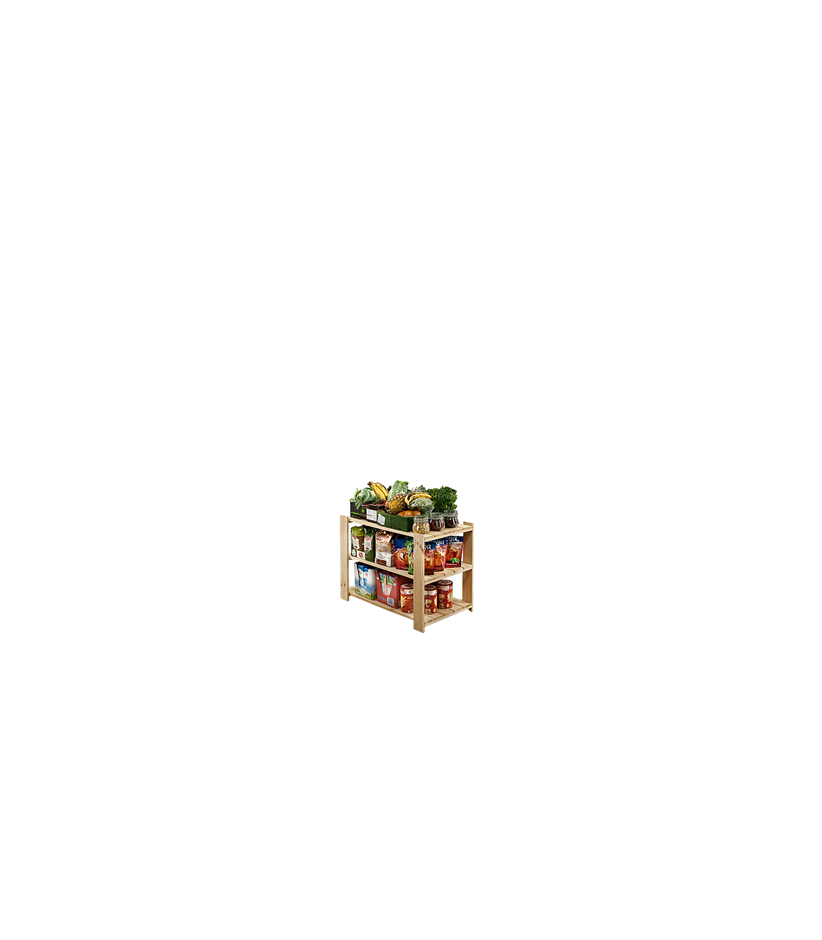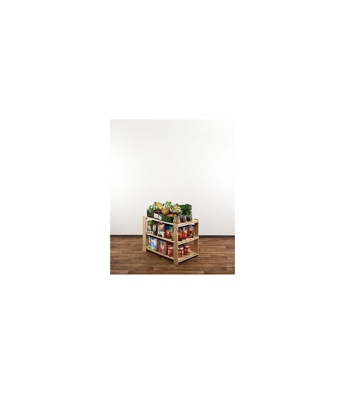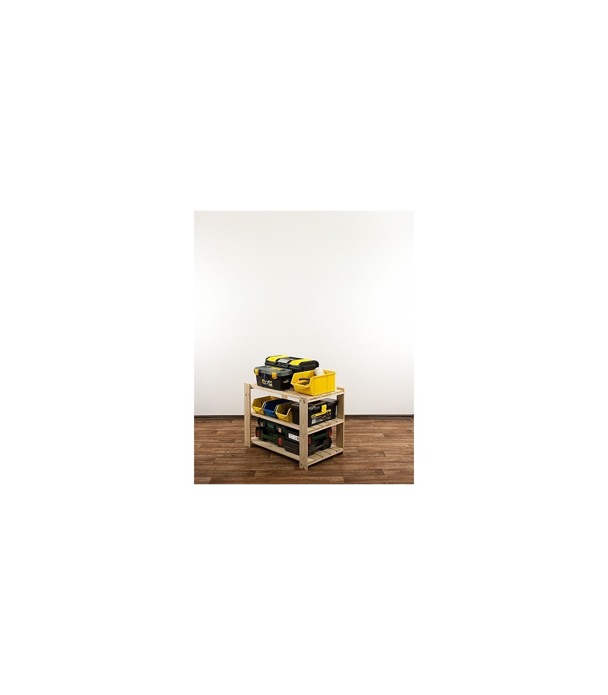 Trzypiętrowa szafka magazynowa o wysokości 64, szerokości 80 i głębokości 50 cm. Blaty z nośnością 120 kg. Samodzielny stojak lub nadstawka do wyższych wariantów z kolekcji MAXI M. Rezerwowe otwory montażowe na nogach, pozwalają na zainstalowanie dodatkowych półek, np platform do leżakowania wina oraz dobór wysokości poziomów.
