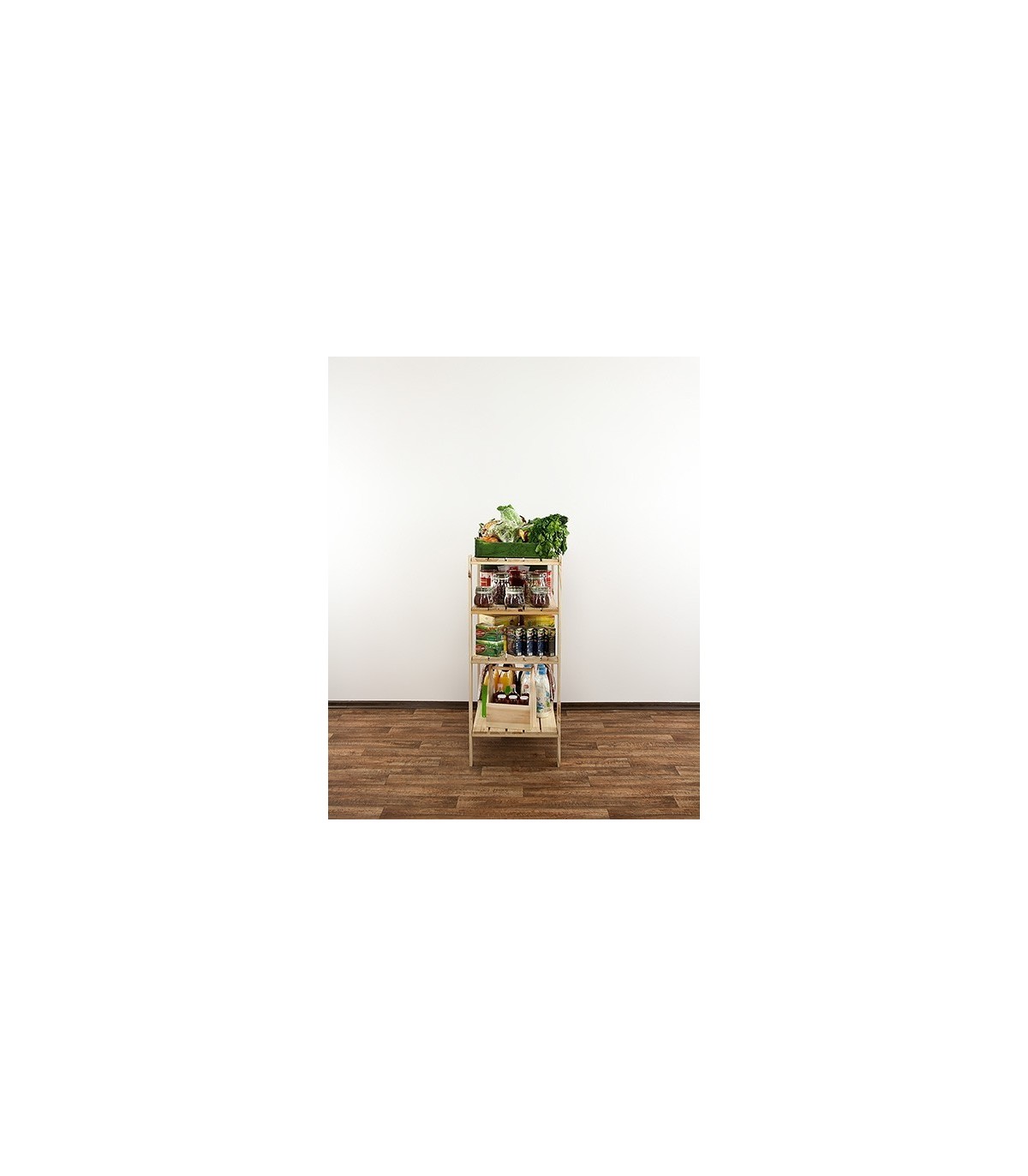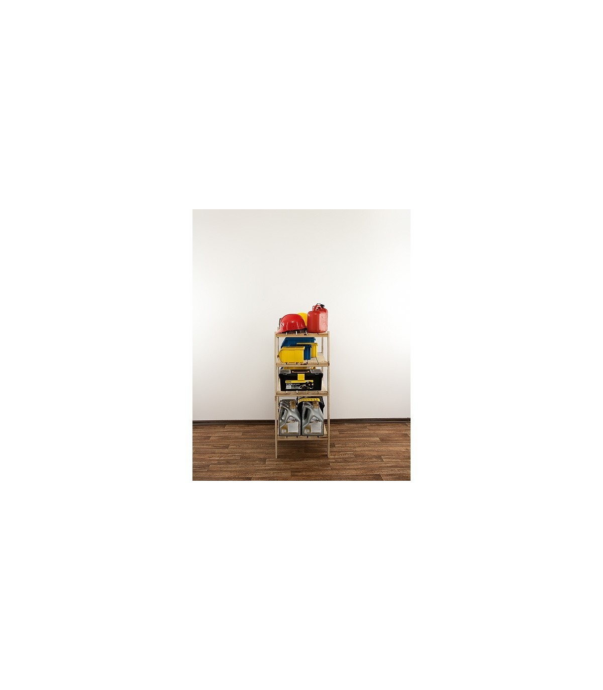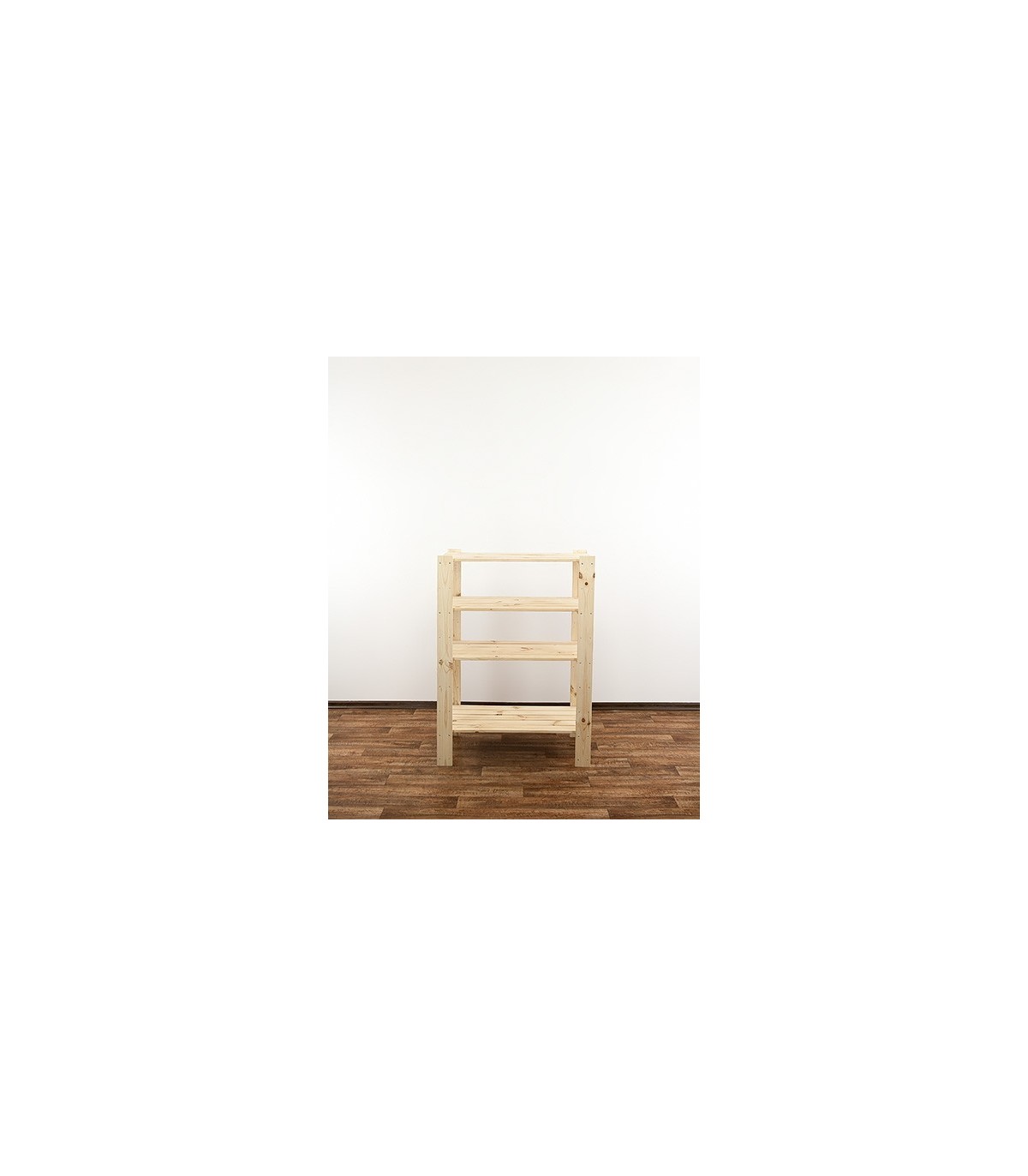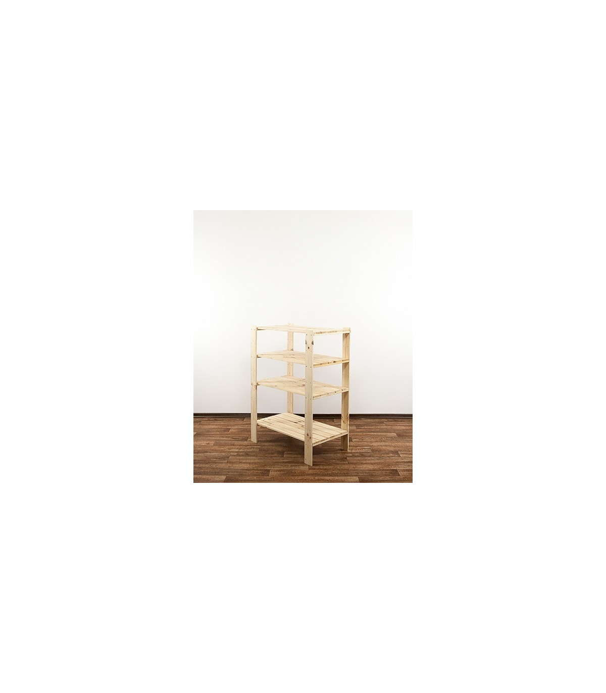 Regał MAXI 3M+ o wysokości 115, szerokości 80 i głębokości 50 cm. Nośność każdej półki wynosi 120 kg. Czteropiętrowy stojak z ażurowymi blatami. Filary zaopatrzone w dodatkowe otwory rezerwowe, do opcjonalnej regulacji odległości pomiędzy kondygnacjami oraz instalowania poziomów dodatkowych np. specjalnych półek na butelki.