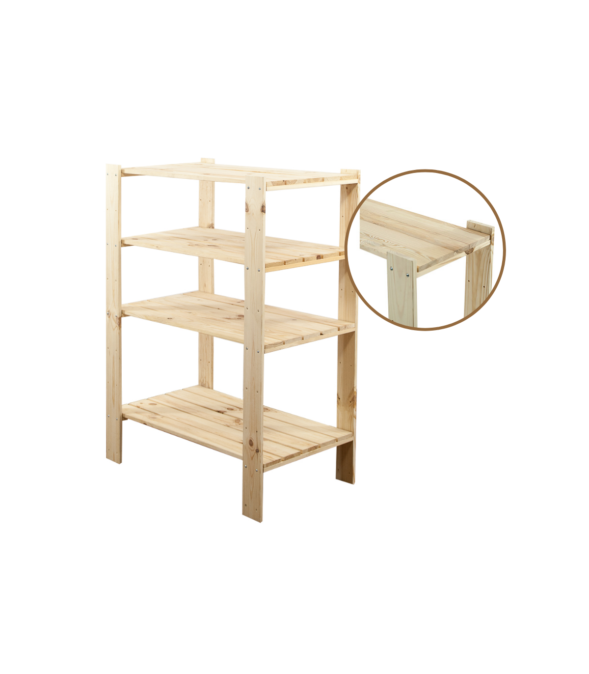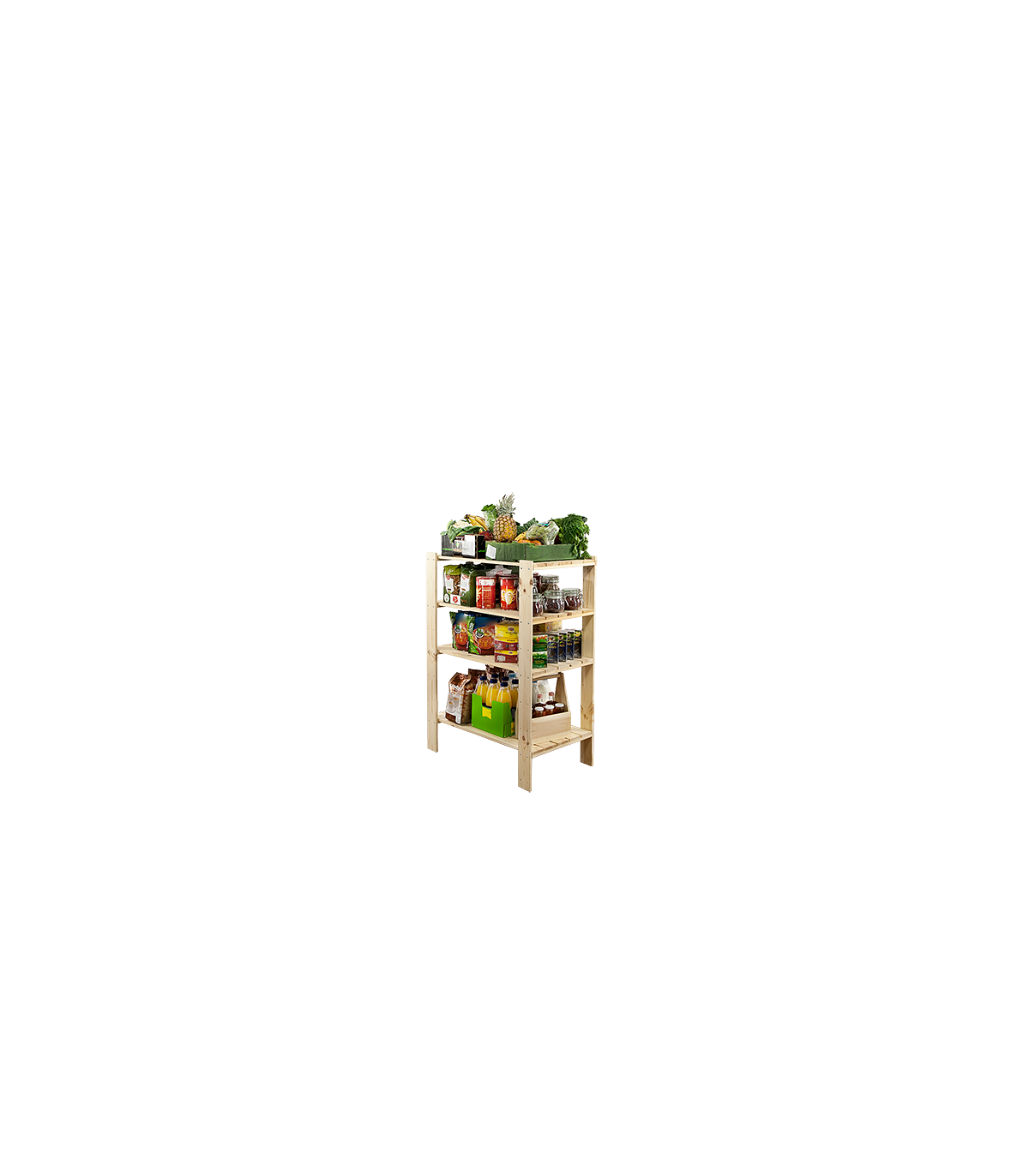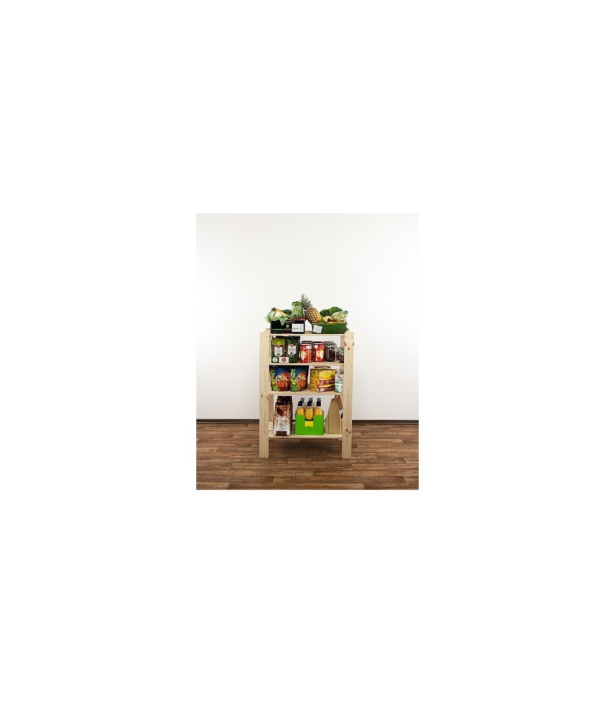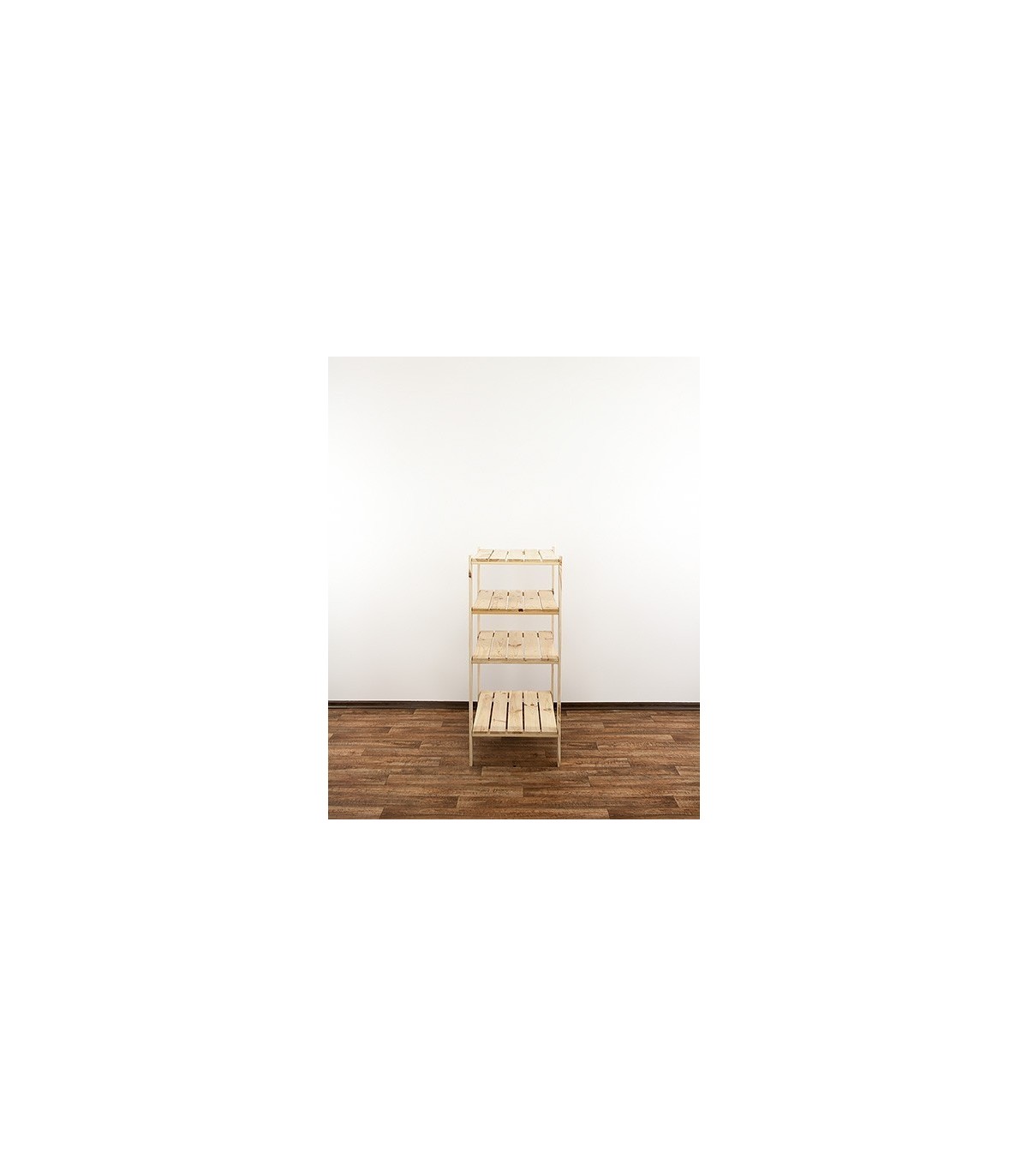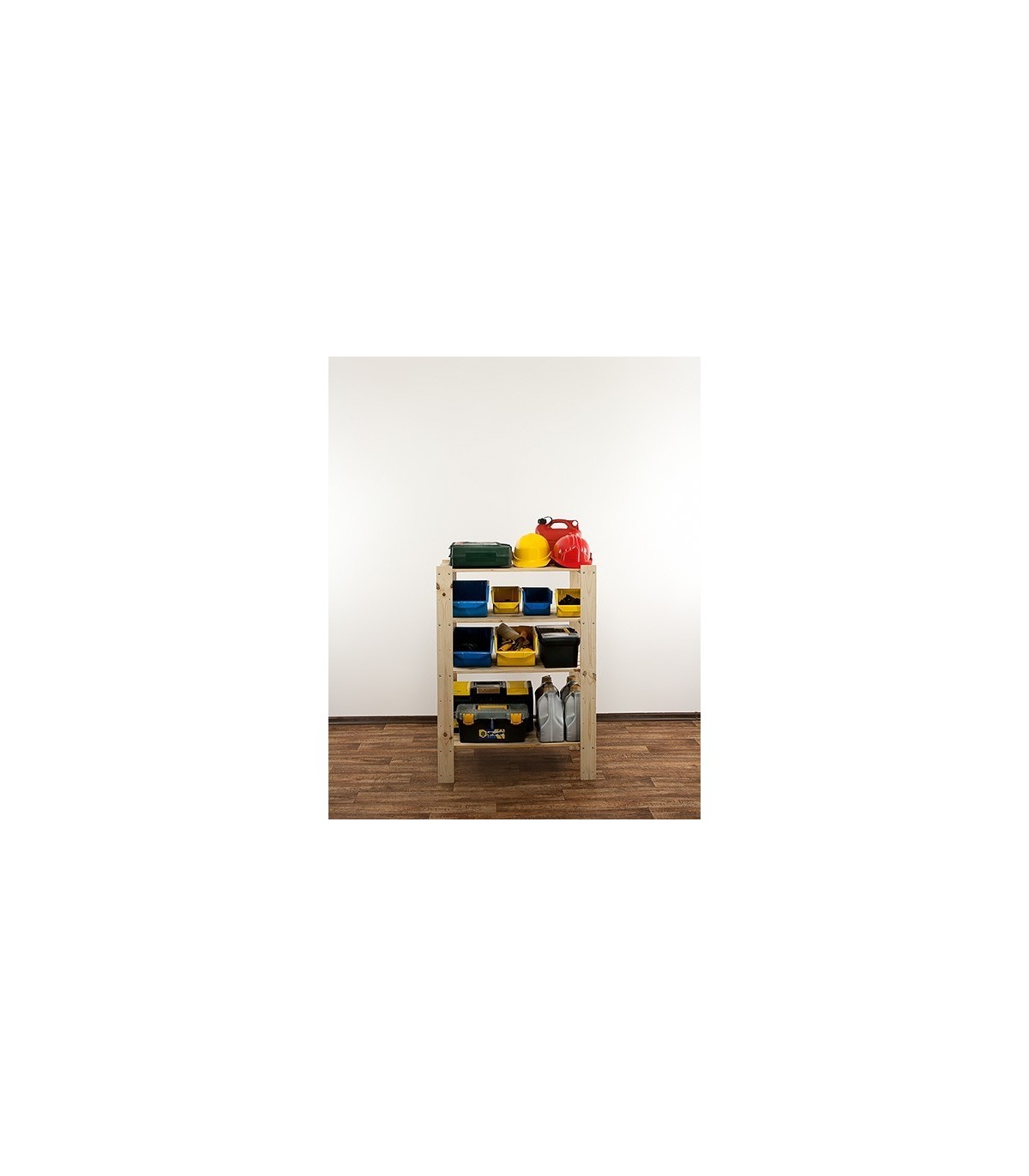 Regał MAXI 3M+ o wysokości 115, szerokości 80 i głębokości 50 cm. Nośność każdej półki wynosi 120 kg. Czteropiętrowy stojak z ażurowymi blatami. Filary zaopatrzone w dodatkowe otwory rezerwowe, do opcjonalnej regulacji odległości pomiędzy kondygnacjami oraz instalowania poziomów dodatkowych np. specjalnych półek na butelki.