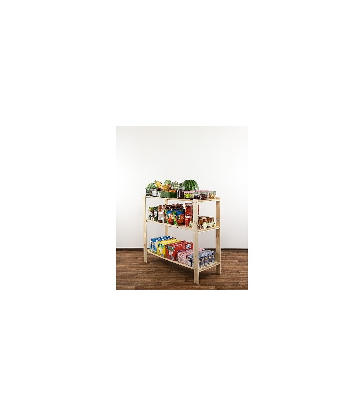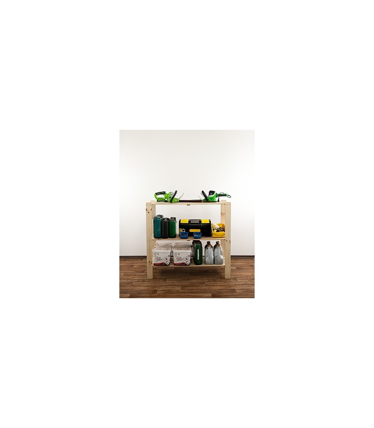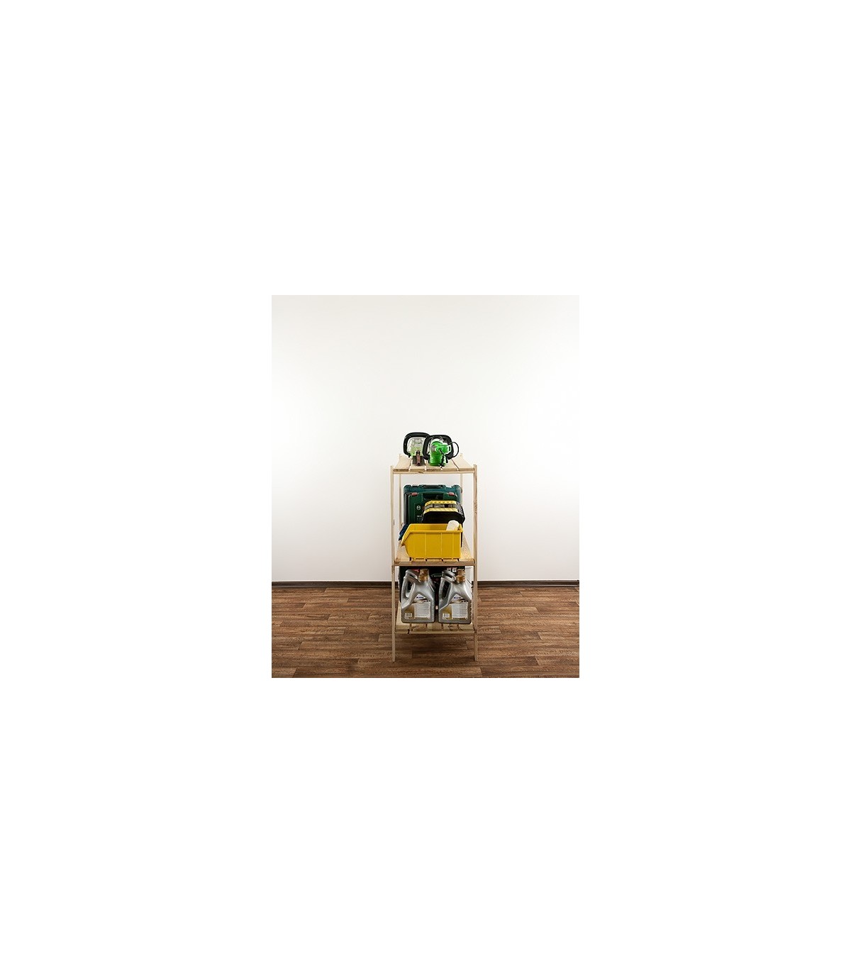 Wysoki na 115 cm regał Maxi w wydaniu trzypiętrowym z ażurowymi półkami o nośności 100 kg. Mebel uniwersalny do zagospodarowania pomieszczeń magazynowych lub aranżacji mieszkań i biur.