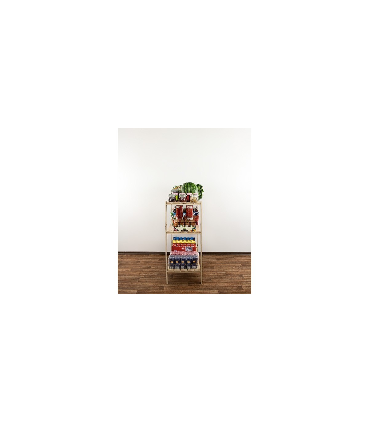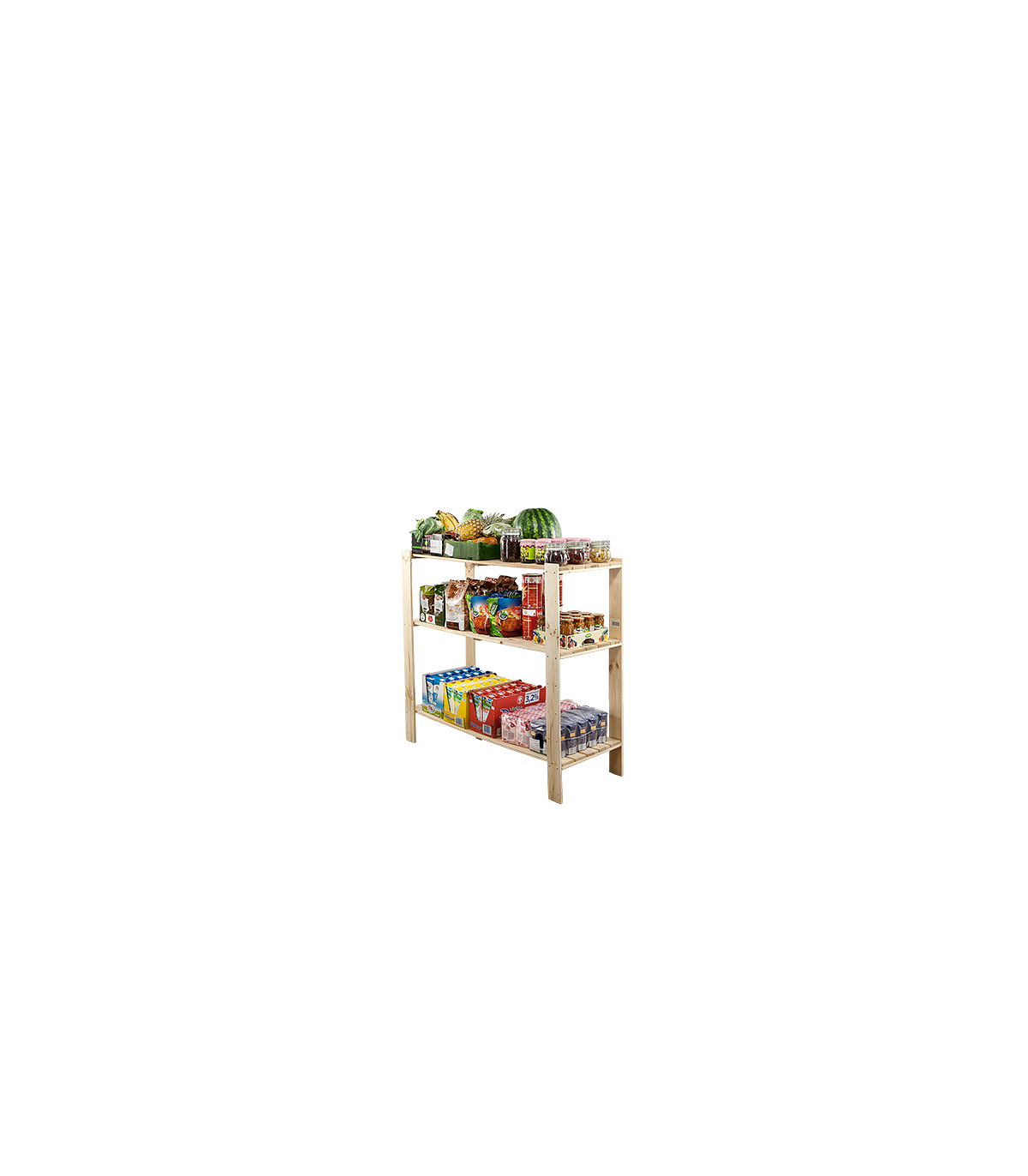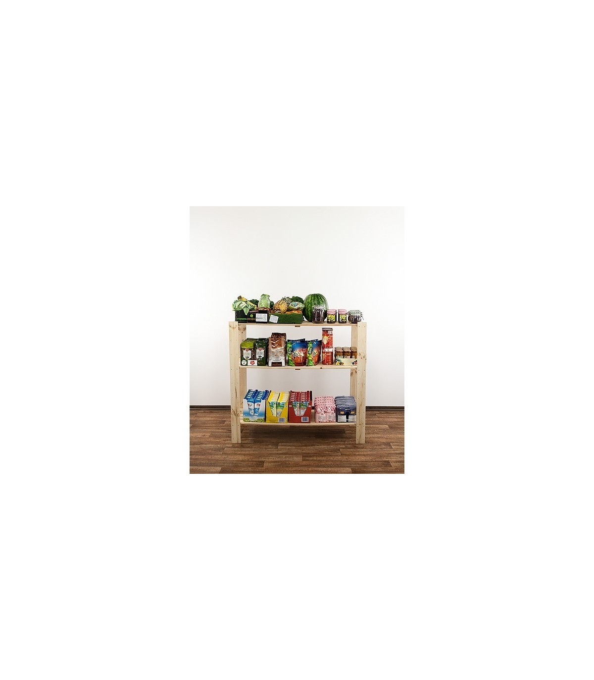 Wysoki na 115 cm regał Maxi w wydaniu trzypiętrowym z ażurowymi półkami o nośności 100 kg. Mebel uniwersalny do zagospodarowania pomieszczeń magazynowych lub aranżacji mieszkań i biur.