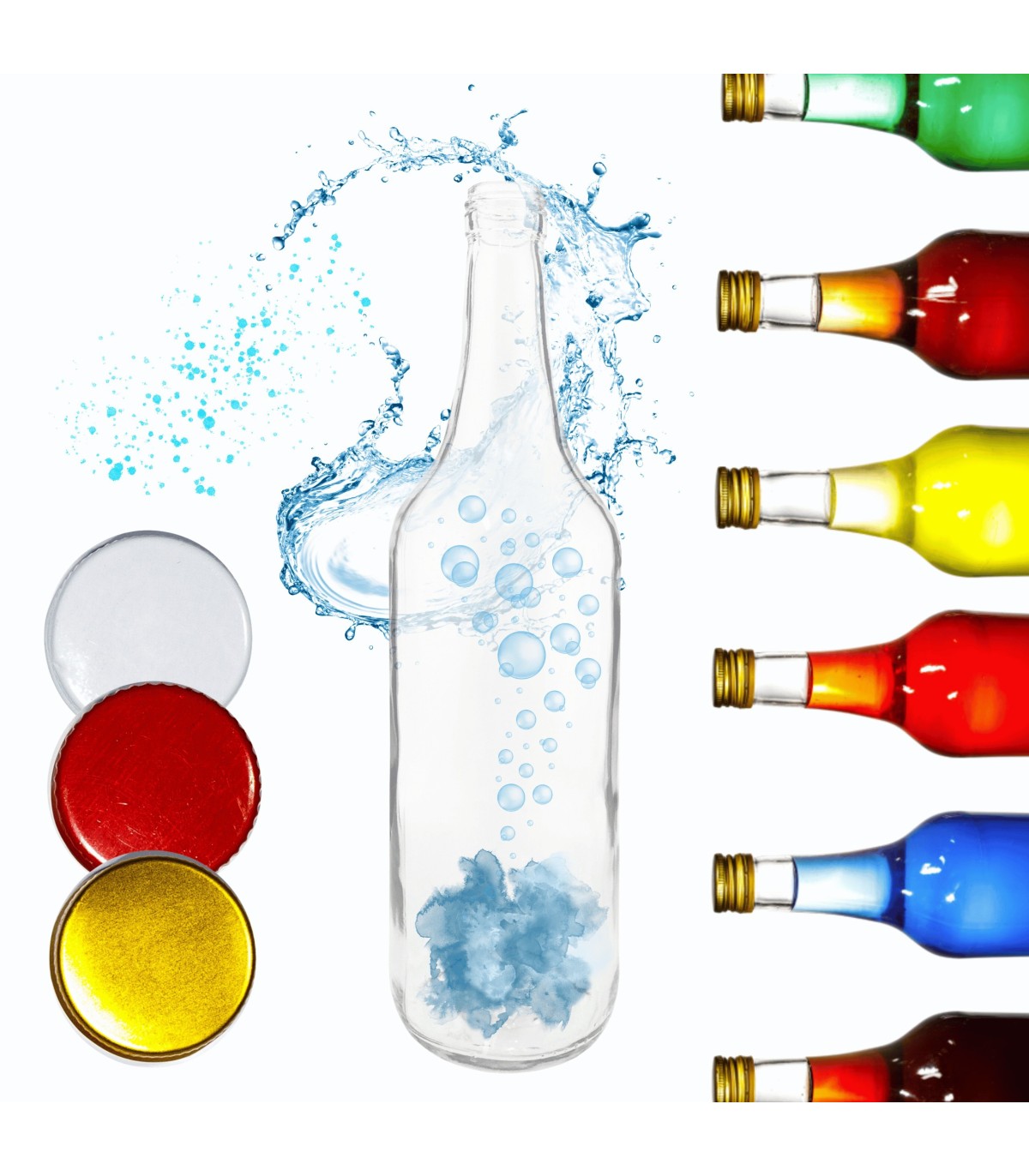 Butelki sprzedawane są puste, z zakrętkami, bez wypełnienia.