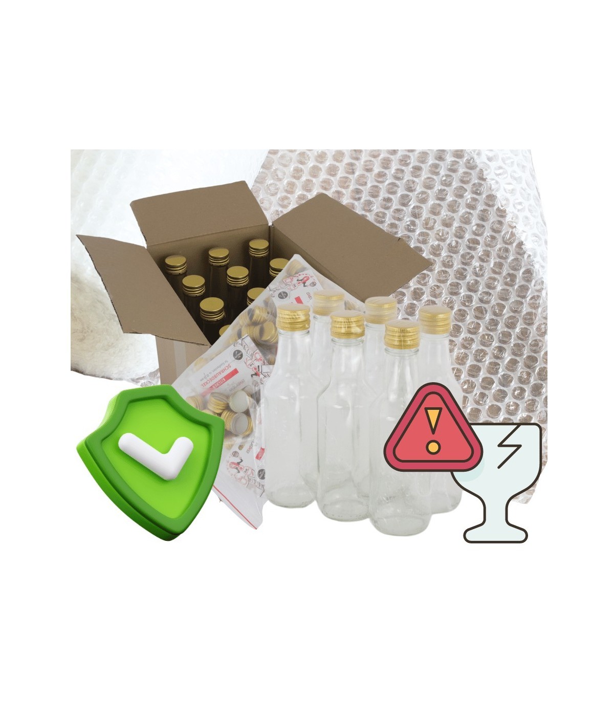 Masz pewność, że dołożyliśmy wszelkich starań, aby butelki bezpiecznie pokonały podróż do Twojego domu. Stosujemy bezpieczne folie powietrzne i odpowiednie przekładki zabezpieczające.