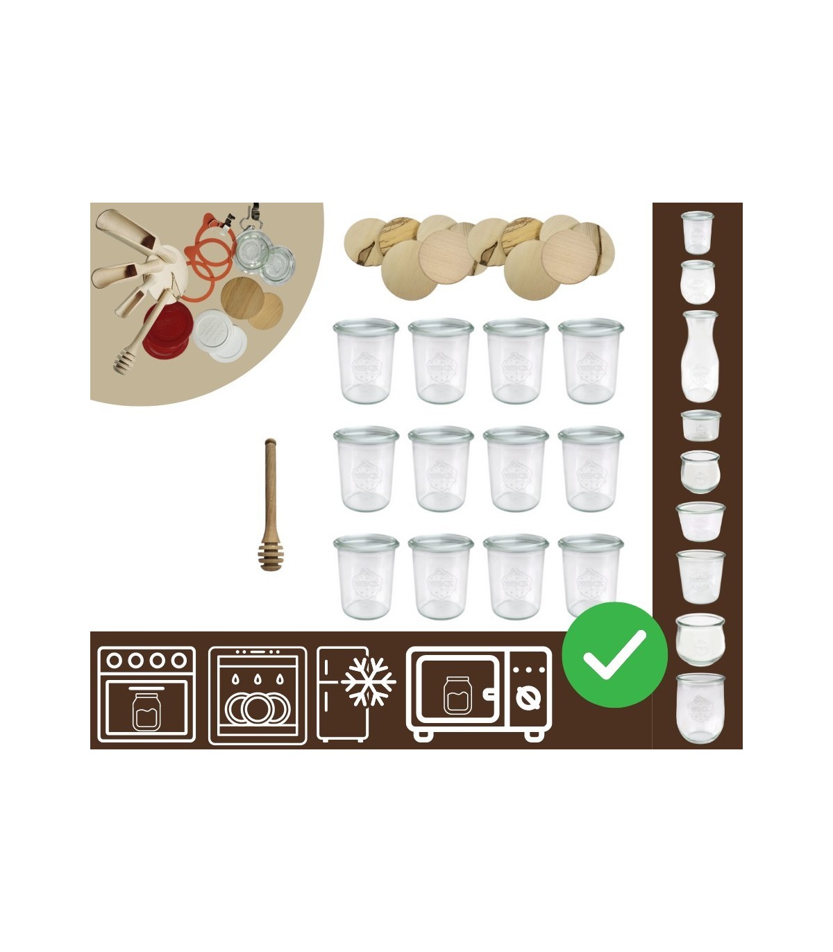- słoiki weck w zestawach 6 i 12 sztuk, w przedziale objętości od 160 - 1062 ml;