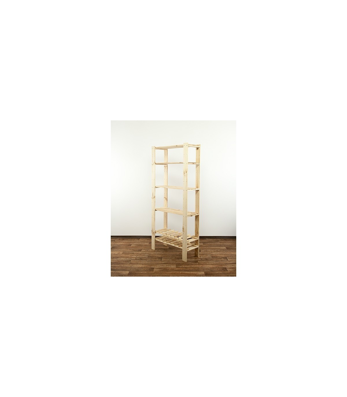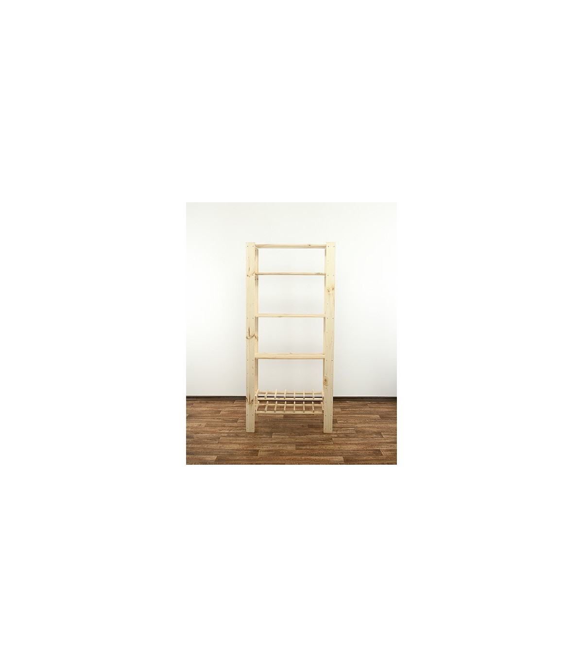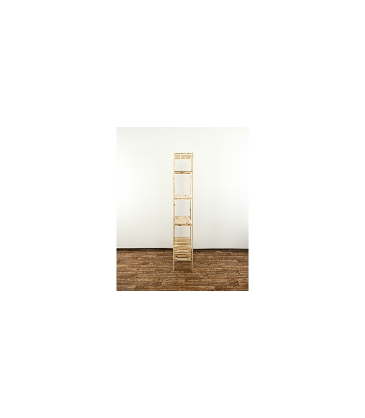 Sześciopiętrowy regał MAXI RW-4L o wysokości 166,4, szerokości 80 i głębokości 30 cm. Mebel wyposażony jest w cztery ażurowe półki o nośności 12o kg oraz dwie, sześcio - przegrodowe półki na butelki. Na listwach pionowych znajdują się dodatkowe otwory montażowe, służące do regulacji odległości poziomów oraz mocowanie blatów dodatkowych.
