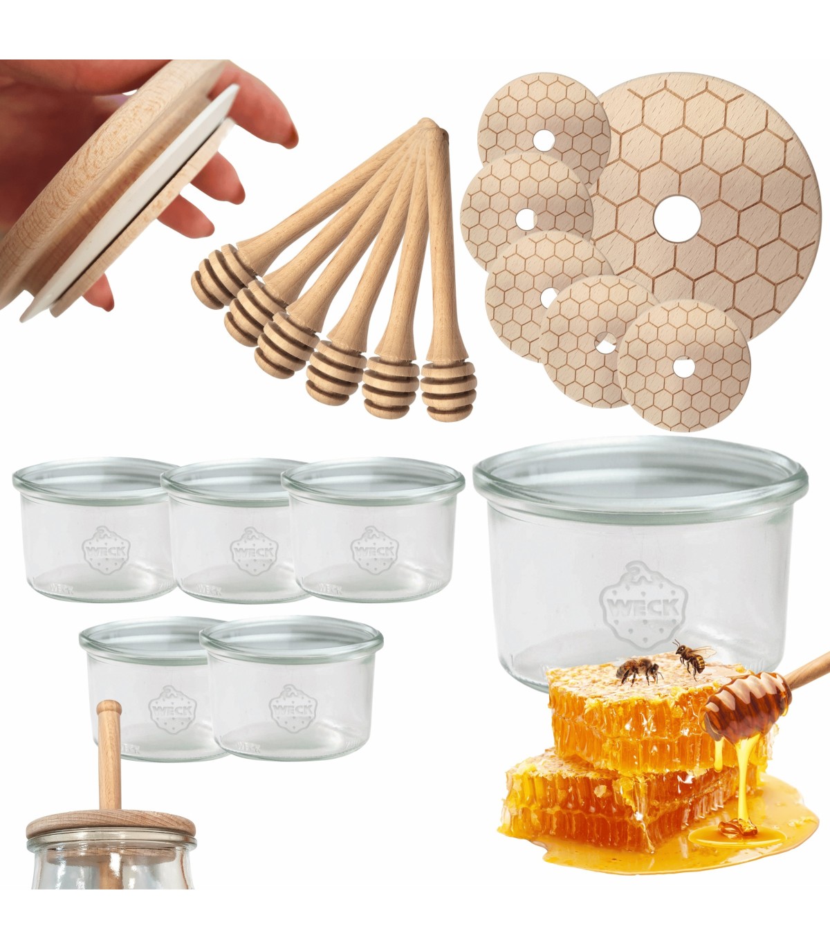 Bezkonkurencyjne słoiki do miodu WECK z pokrywką oraz nabierakiem do miodu (zestaw 6 szt) zaopatrzonymi certyfikatem FSC . Słoiki na lata, z ponad 120-letnią tradycją!