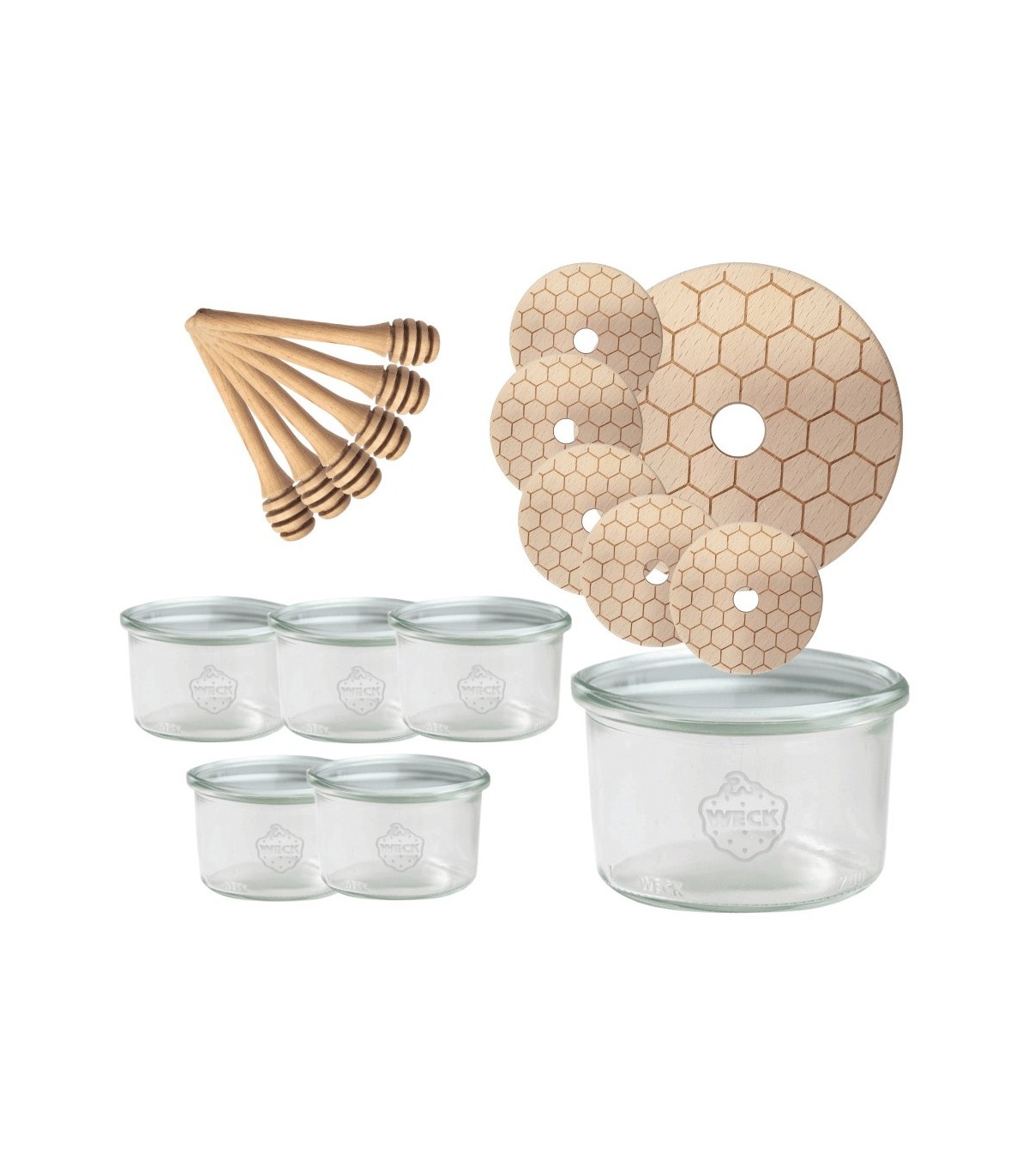 Słoiki na miód WECK zestaw słoików do miodu z nabierakiem 200ml W3 6szt EKO