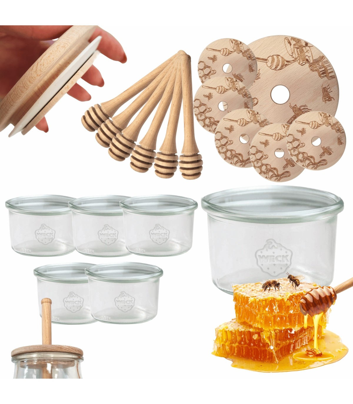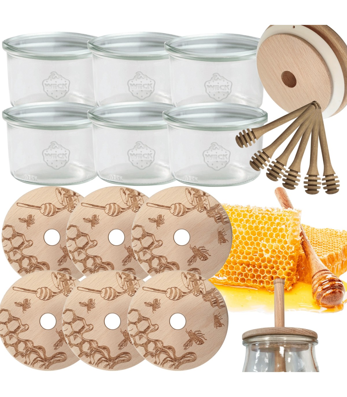 Słoiki na miód WECK zestaw słoików do miodu z nabierakiem 200ml W2 6szt EKO