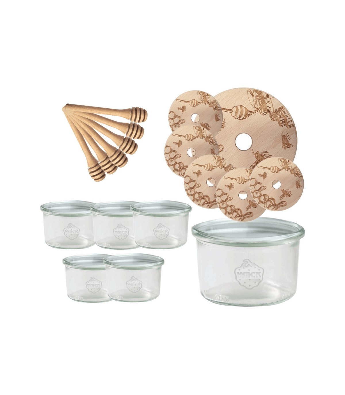 Bezkonkurencyjne słoiki do miodu WECK z pokrywką oraz nabierakiem do miodu (zestaw 6 szt) zaopatrzonymi certyfikatem FSC . Słoiki na lata, z ponad 120-letnią tradycją!