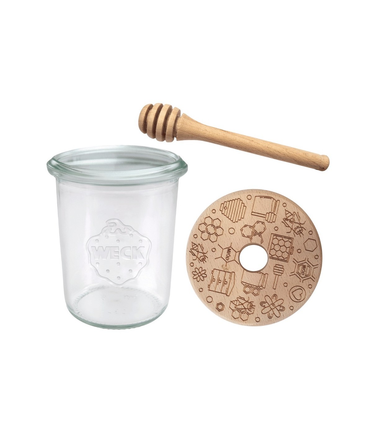 Bezkonkurencyjny słoik do miodu WECK z pokrywką oraz nabierakiem do miodu zaopatrzonymi certyfikatem FSC . Słoiki na lata, z ponad 120-letnią tradycją!