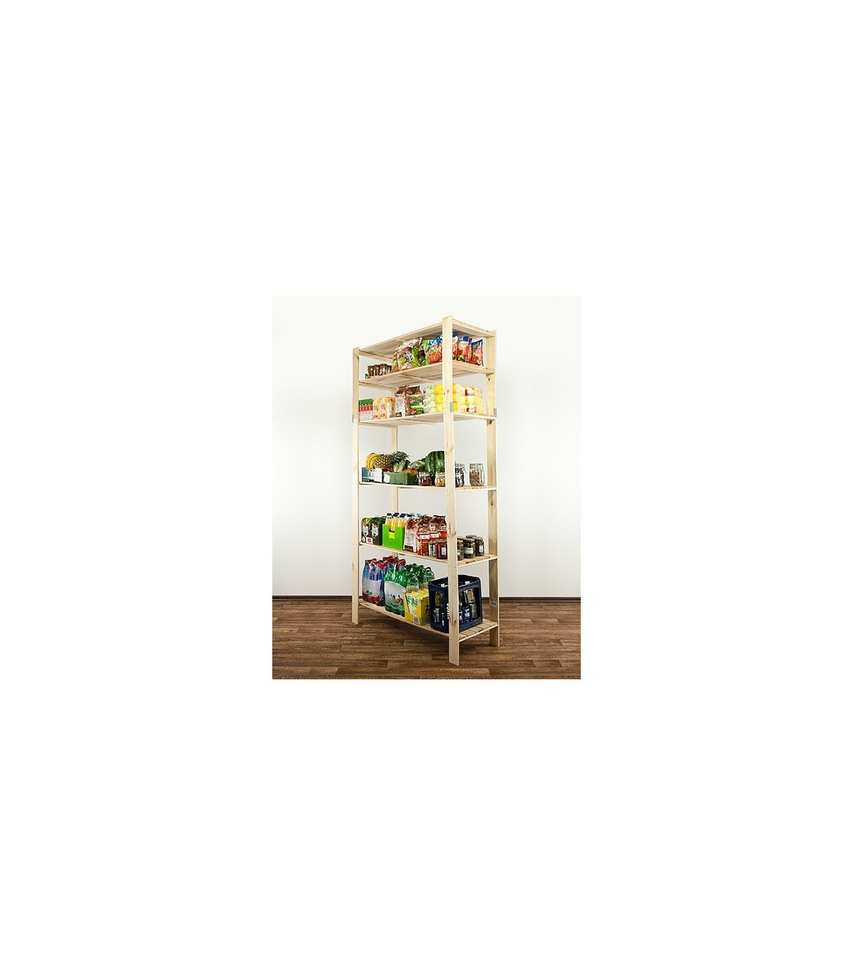 Otwarty regał sosnowy do mieszkania lub magazynu z ażurowymi półkami o nośności 100 kg każda. Sześciopiętrowy stojak z zamocowaną nadstawką, którą można w dowolnej chwili odinstalować i postawić osobno.