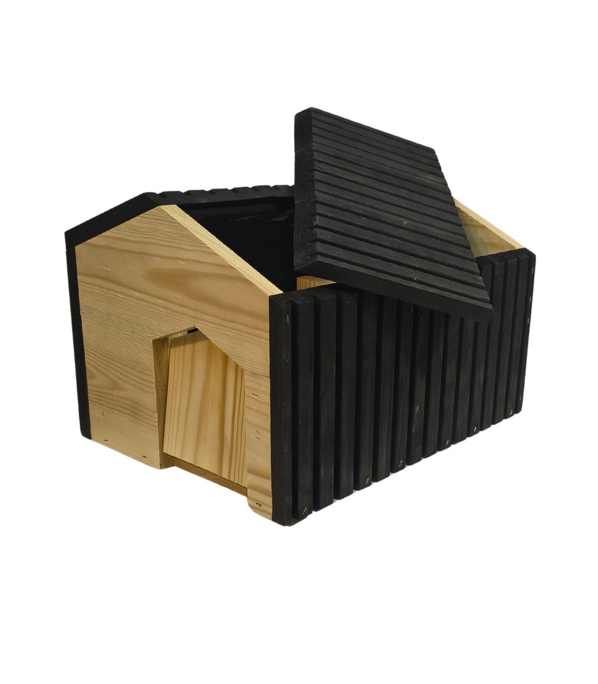 ⭐ Starannie zaprojektowany domek to idealne schronienie do zimowania oraz wychowania młodych. Drewniana konstrukcja zapewnia izolację od zimna i wilgoci, a daszek chroni przed deszczem i słońcem.