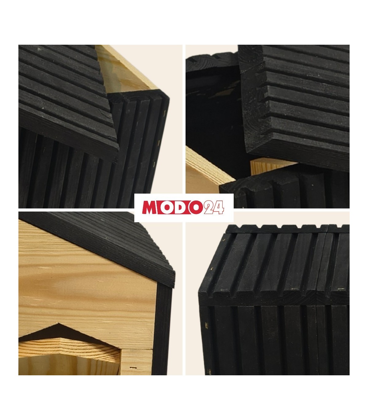 ⭐ Każdy domek zachowuje swój naturalny, lamelowy charakter, dzięki czemu staje się nie tylko schronieniem dla jeży, ale także ozdobą ogrodu, działki czy tarasu.