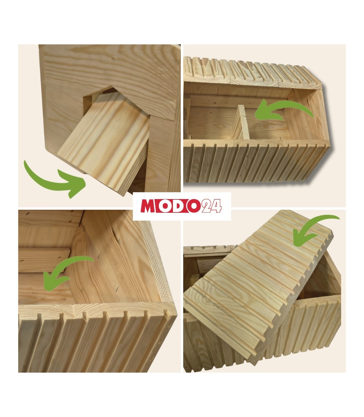 ✅ Gładkie wnętrze z naturalnego drewna – bezpieczne i przyjazne dla zwierząt.