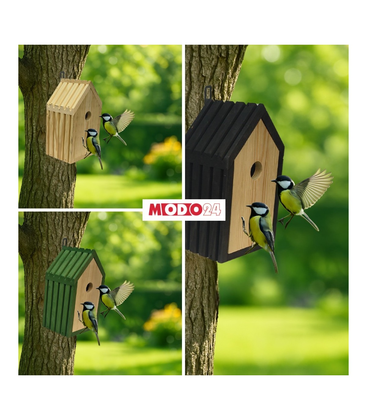 Nasze budki lęgowe dostępne są w kilku atrakcyjnych kolorach: naturalnym, zielonym, czarnym i brązowym.