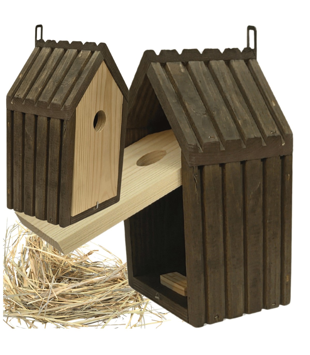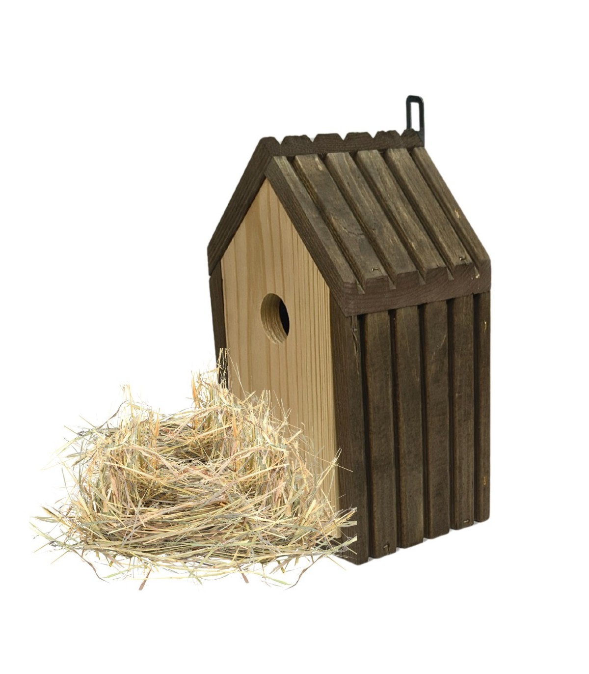 Budki lęgowe dostępne są także w wersji bez i z naturalnym siankiem, które pełni rolę gotowego wypełnienia i dodatkowej izolacji.