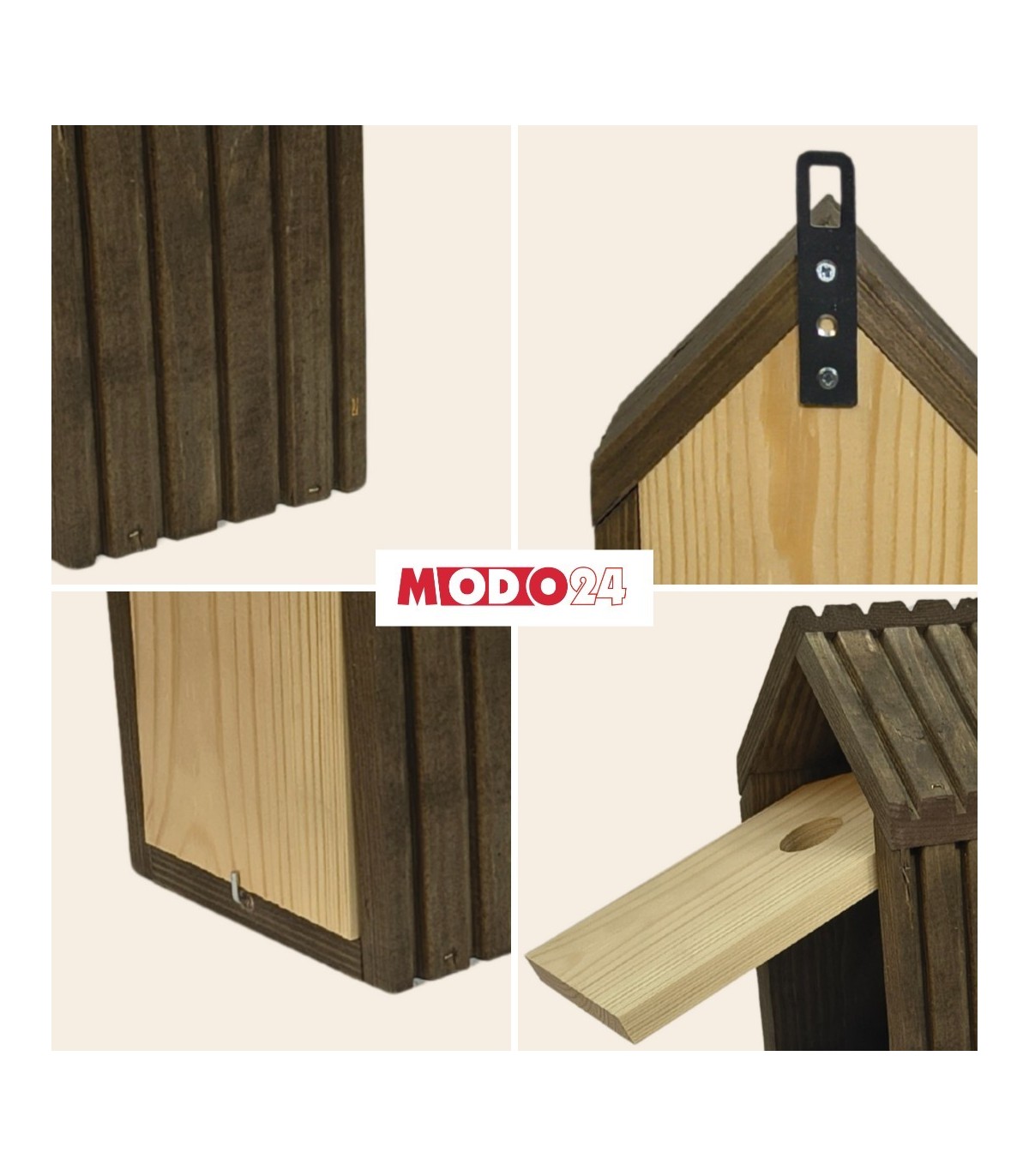 ⭐ Każda budka zachowuje swój naturalny, lamelowy charakter, który sprawia, że jest nie tylko schronieniem dla ptaków, ale również ozdobą tarasu, działki czy ogrodu.