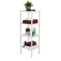 Prosty i funkcjonalny a przy tym estetycznie wykończony regał w kolorze białym, wykonany z drewna bukowego..