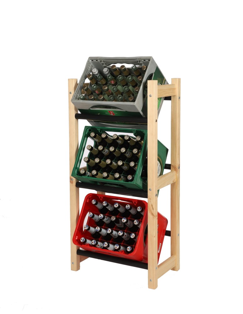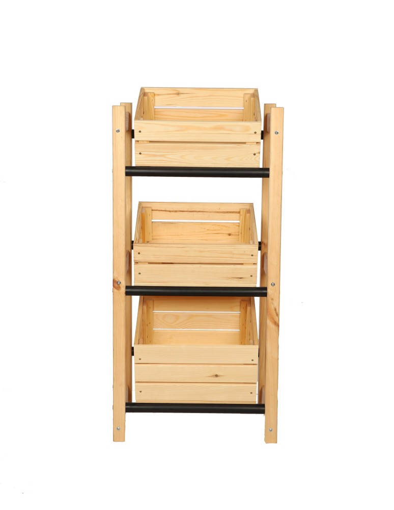 Stojak na Skrzynki (3szt) – Plastik/ Naturalne Drewno – 108X53X32 cm