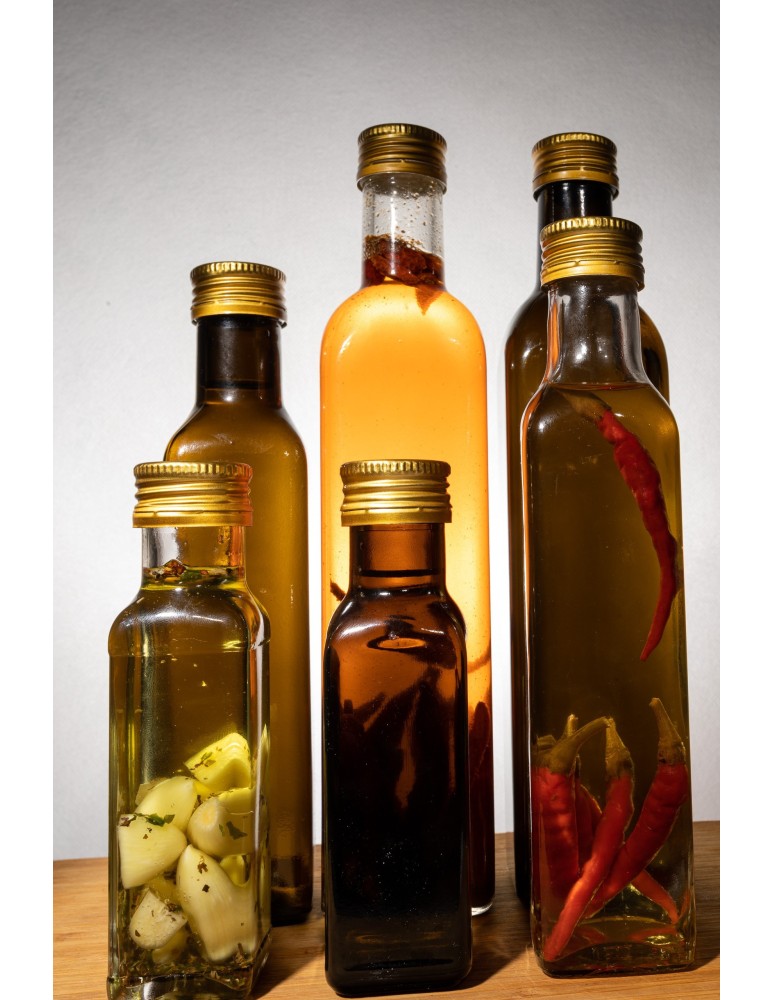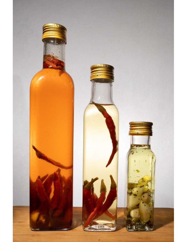 Przezroczysta butelka kwadratowa 250 ml ze złotą nakrętką fi 31,5 mm · 6 sztuk