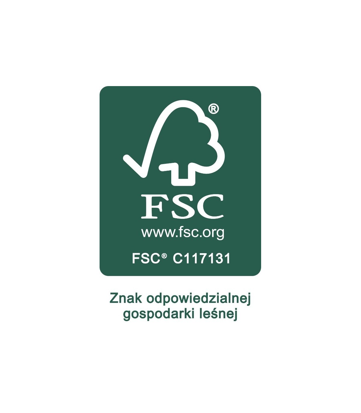 Produkt certyfikowany FSC®, co oznacza, że drewno, wykorzystane do wytworzenia tego produktu pochodzi z dobrze zarządzanych lasów z certyfikatem FSC. FSC pomaga dbać o lasy oraz ludzi i zwierzęta, dla których są one domem.