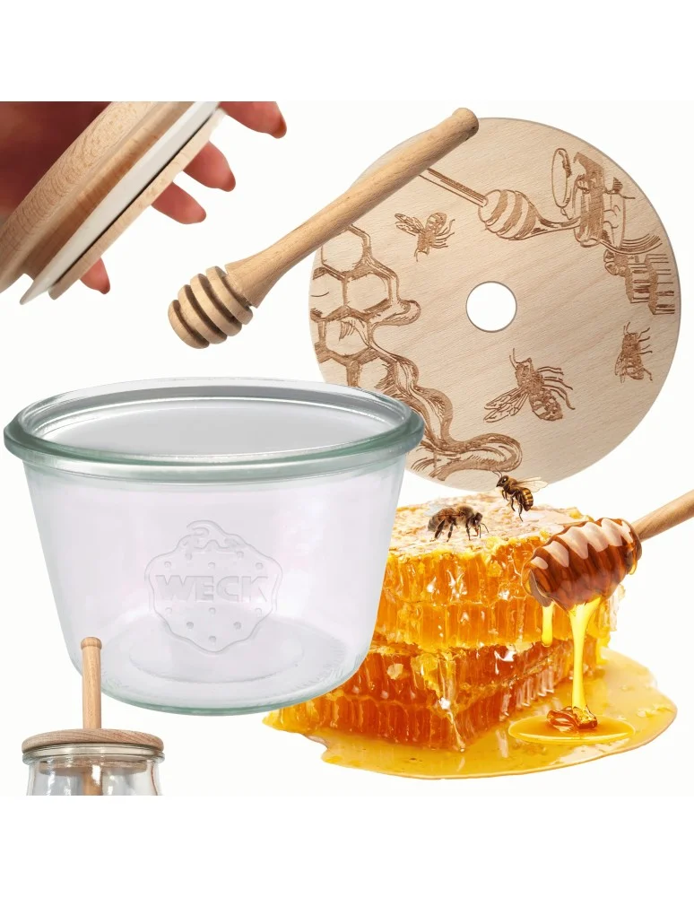Bezkonkurencyjny słoik do miodu WECK z pokrywką oraz nabierakiem do miodu zaopatrzonymi certyfikatem FSC . Słoiki na lata, z ponad 120-letnią tradycją!