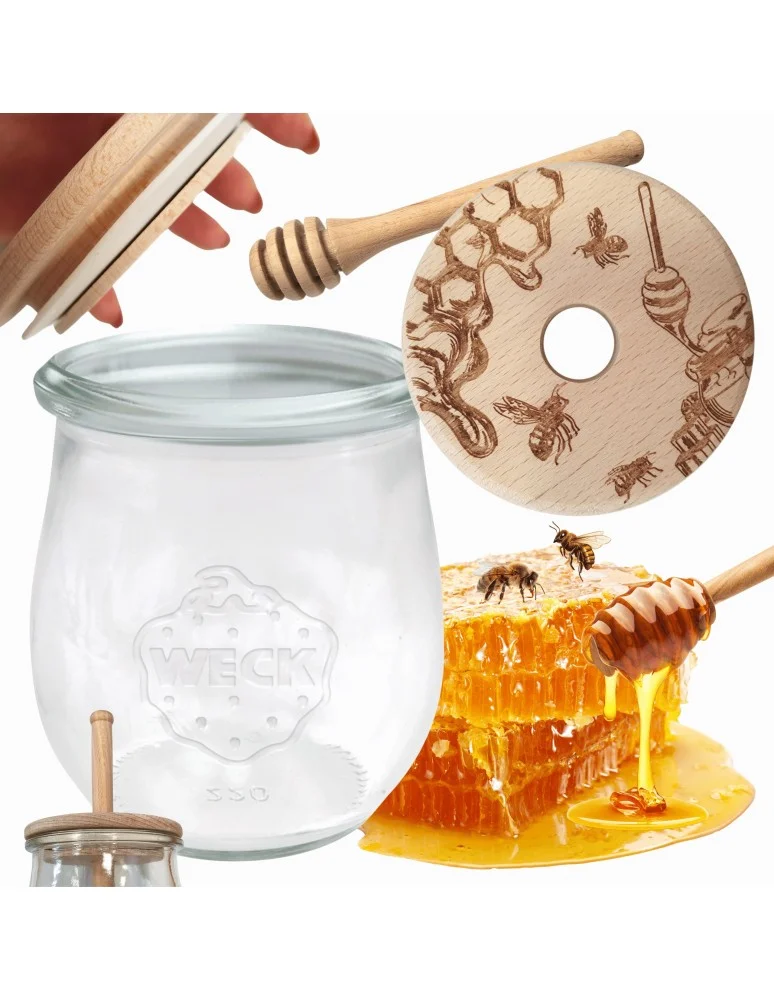 Bezkonkurencyjny słoik do miodu WECK z pokrywką oraz nabierakiem do miodu zaopatrzonymi certyfikatem FSC . Słoiki na lata, z ponad 120-letnią tradycją!