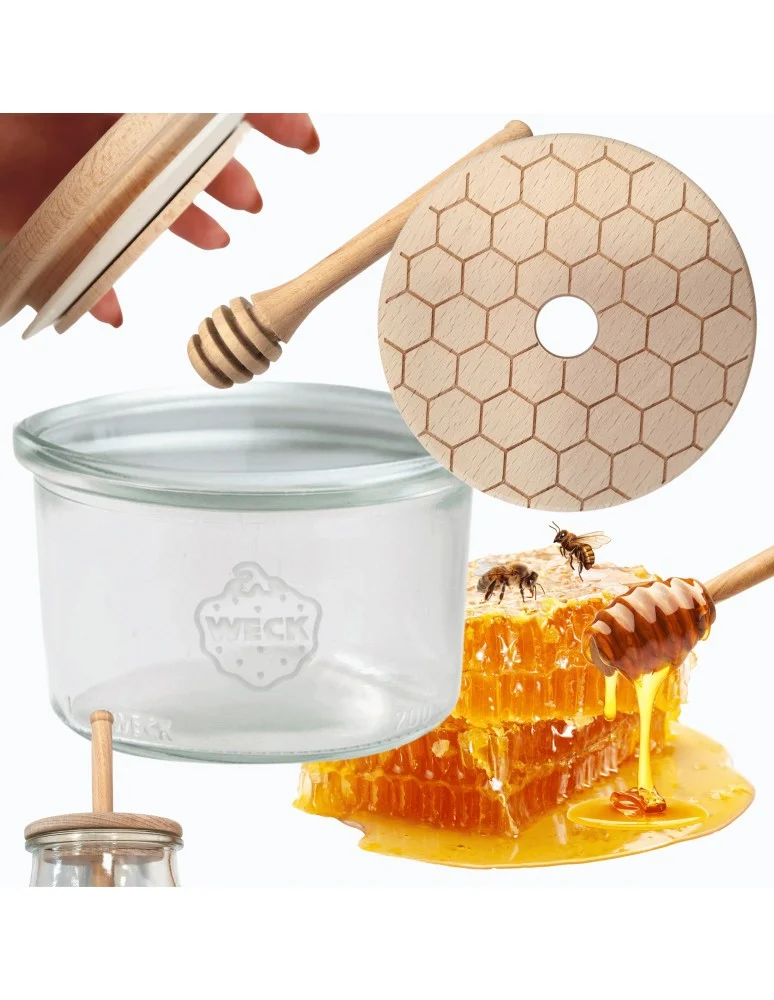 Bezkonkurencyjny słoik do miodu WECK z pokrywką oraz nabierakiem do miodu zaopatrzonymi certyfikatem FSC . Słoiki na lata, z ponad 120-letnią tradycją!