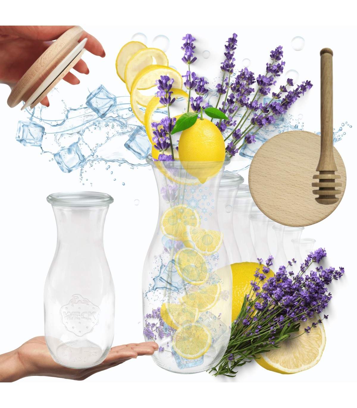 Słoiki WECK 6szt/ drewniane wieko, nabierak KARAFKA 1l 1062ml BUTELKA