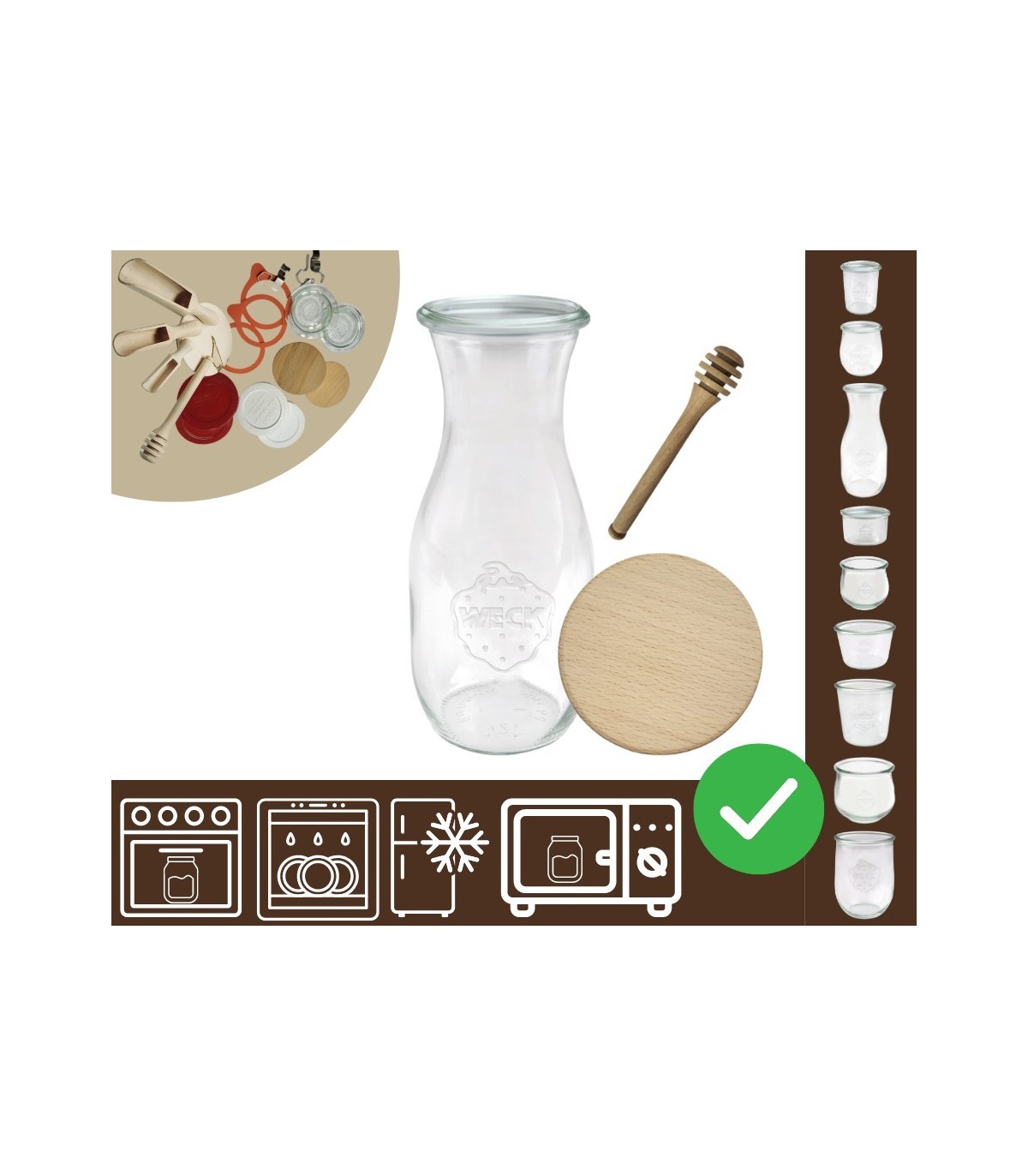 Słoiki WECK / drewniane wieko, nabierak KARAFKA 1l 1062ml BUTELKA