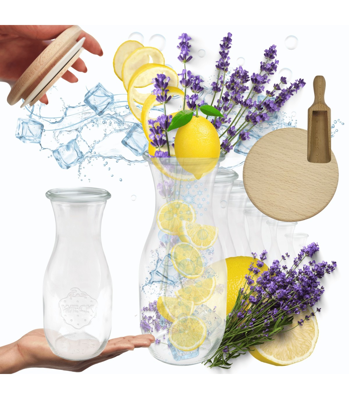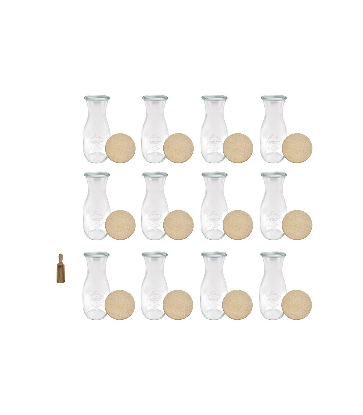 Słoiki WECK 12szt/ drewniane wieko, miarka KARAFKA 1l 1062ml BUTELKA