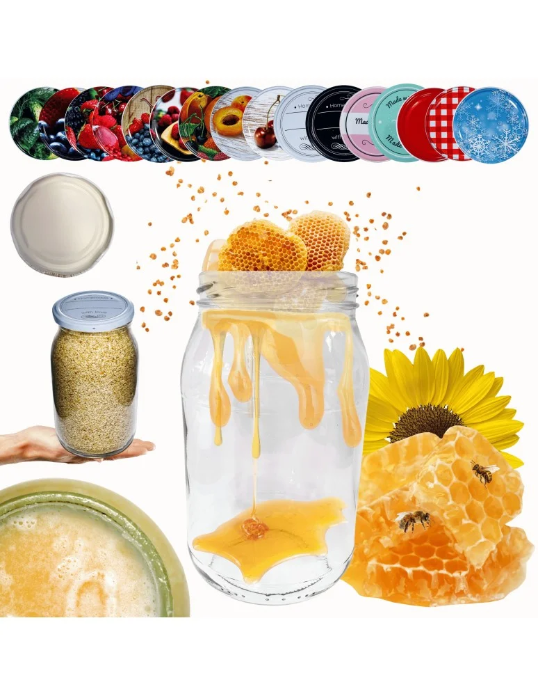 Oferujemy duży wybór wzorów nakrętek, dzięki czemu bez przeszkód dopasujesz wygląd słoika do jego przyszłej zawartości.