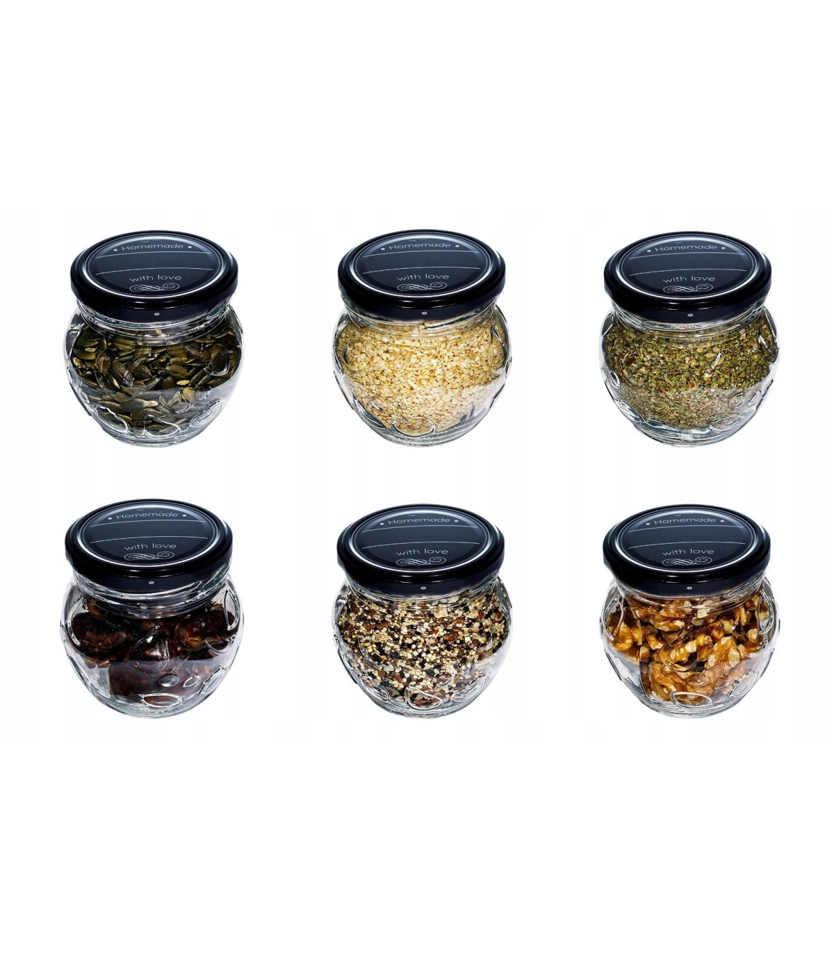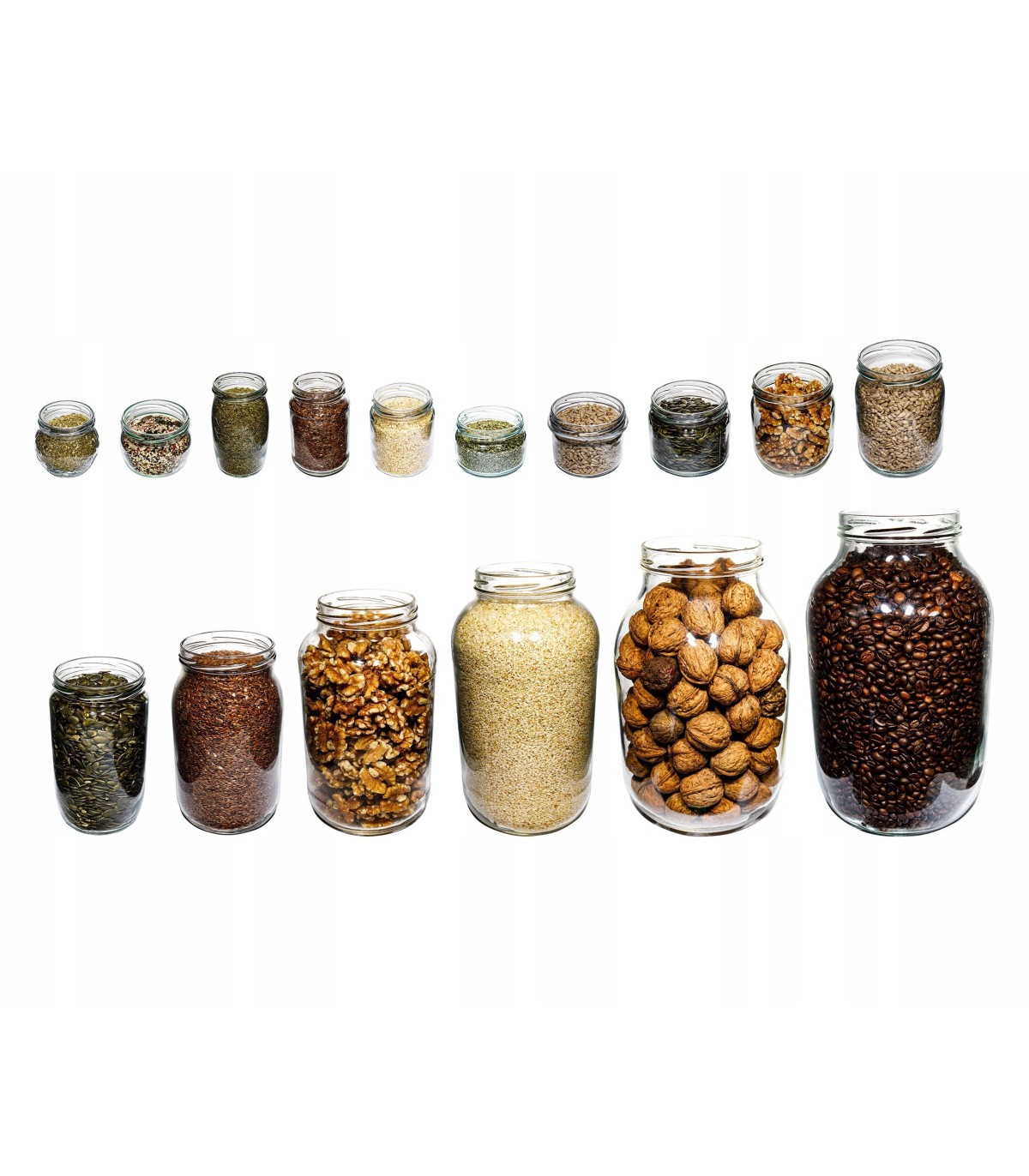 PARAMETRY: Na innych naszych aukcjach zakupisz pozostałe wzory nakrętek i pojemności słoików: UWAGA: Słoiki sprzedawane są puste, w komplecie z nakrętkami, bez wypełnienia.