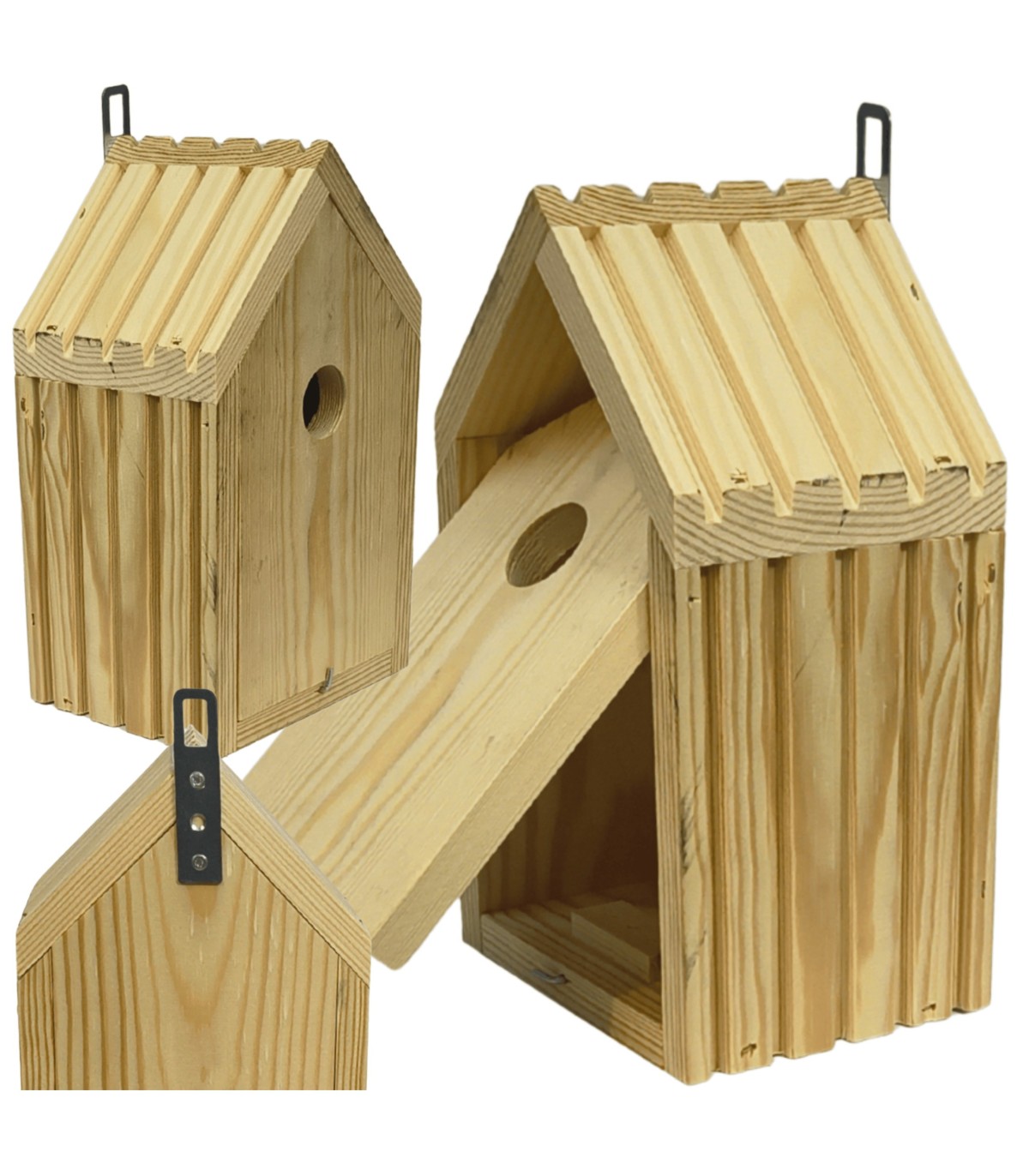 Budki lęgowe dostępne są także w wersji bez i z naturalnym siankiem, które pełni rolę gotowego wypełnienia i dodatkowej izolacji.
