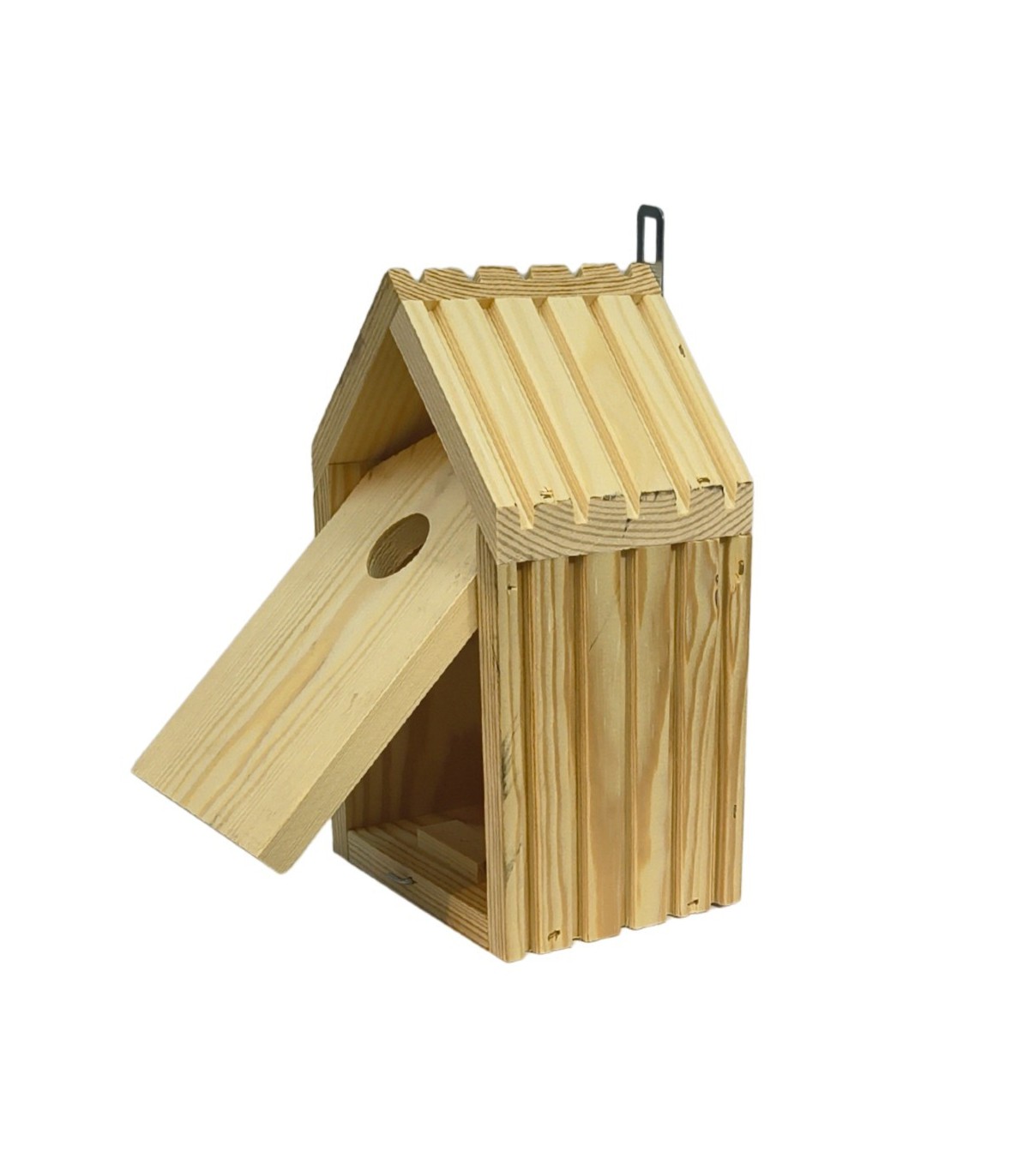 Aby zapewnić ptakom bezpieczne i higieniczne warunki, budka została wyposażona w otwieraną ściankę frontową.