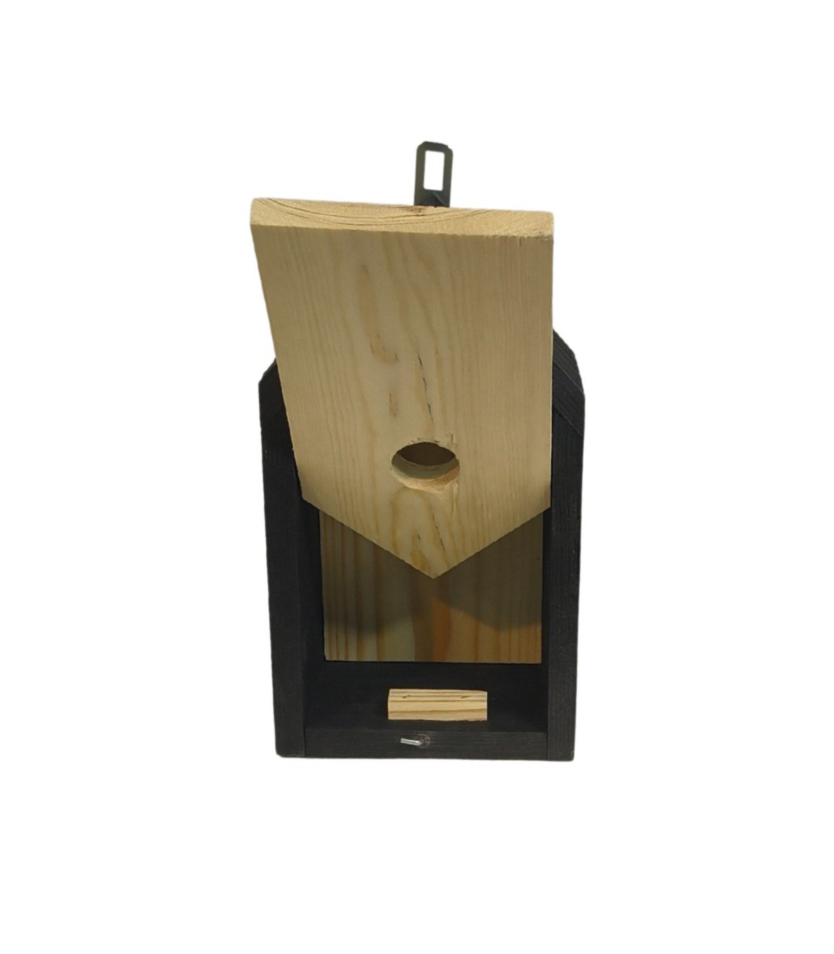 Aby zapewnić ptakom bezpieczne i higieniczne warunki, budka została wyposażona w otwieraną ściankę frontową.
