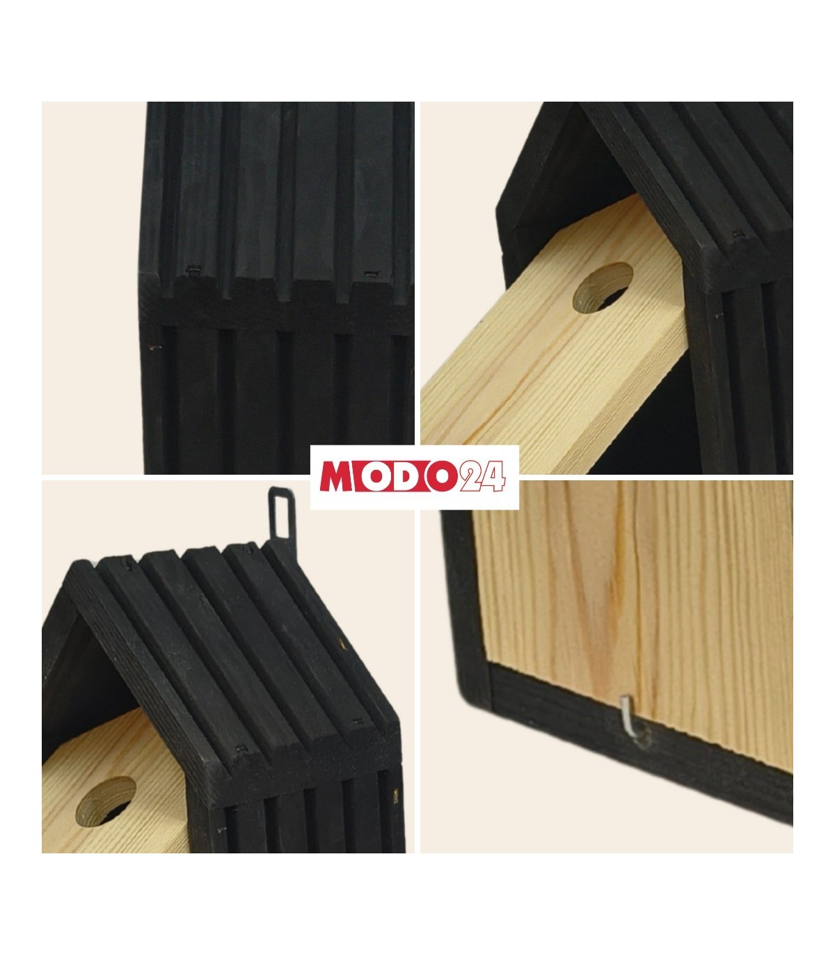 ⭐ Każda budka zachowuje swój naturalny, lamelowy charakter, który sprawia, że jest nie tylko schronieniem dla ptaków, ale również ozdobą tarasu, działki czy ogrodu.