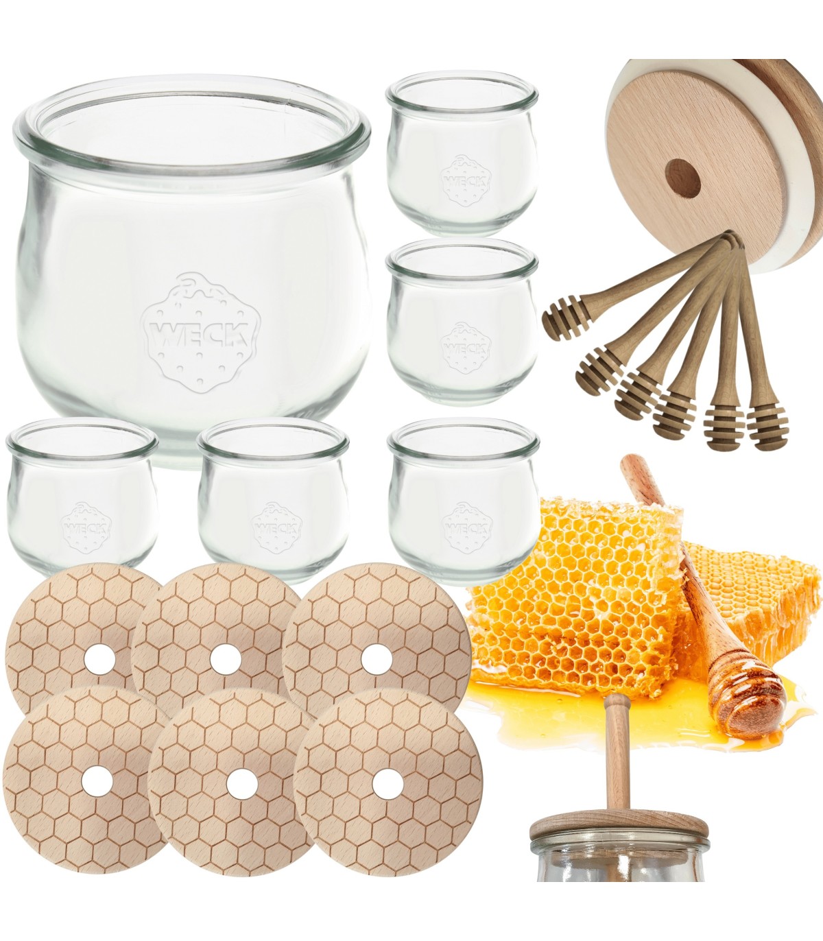 Bezkonkurencyjne słoiki do miodu WECK z pokrywką oraz nabierakiem do miodu (zestaw 6 szt) zaopatrzonymi certyfikatem FSC . Słoiki na lata, z ponad 120-letnią tradycją!