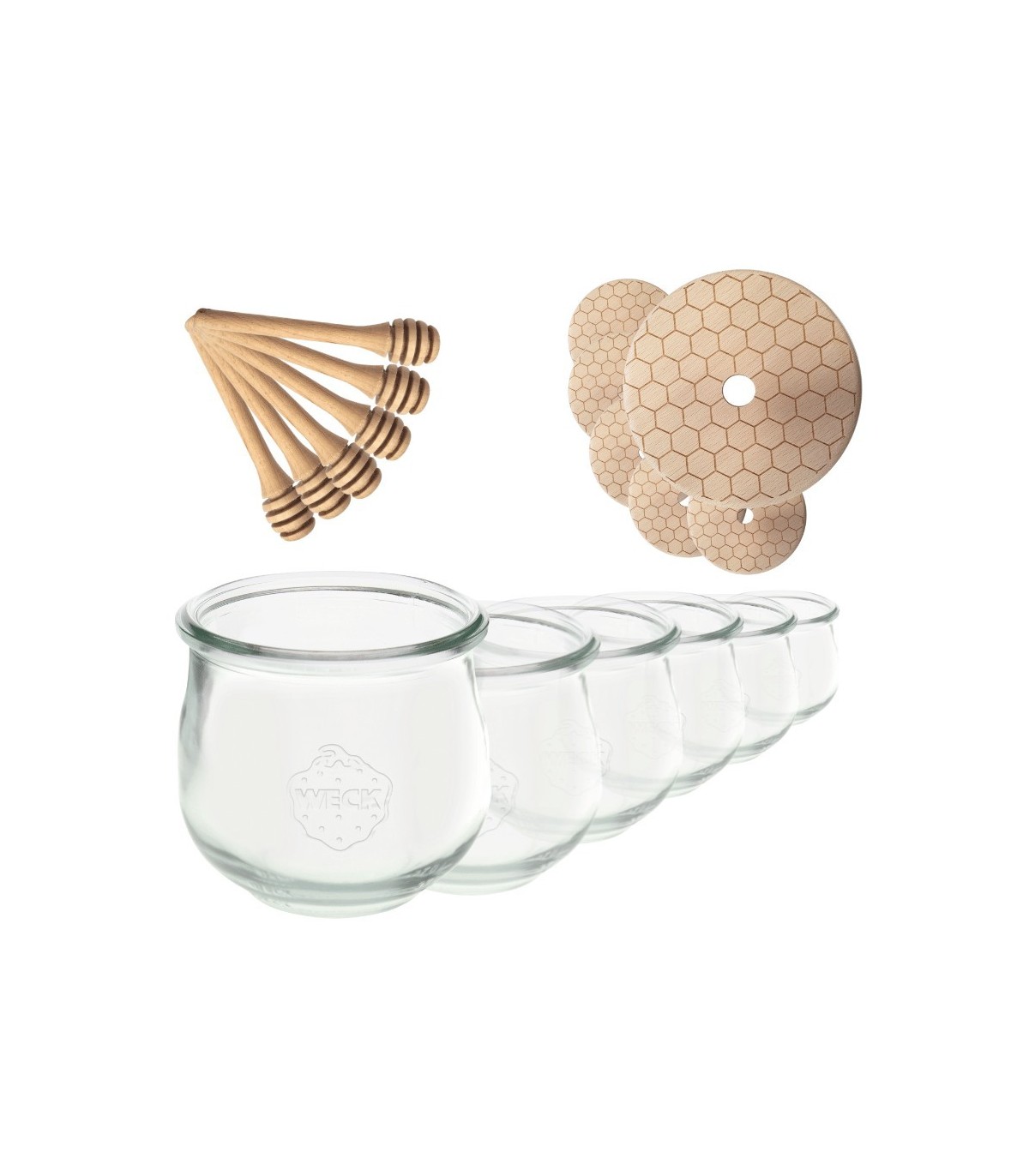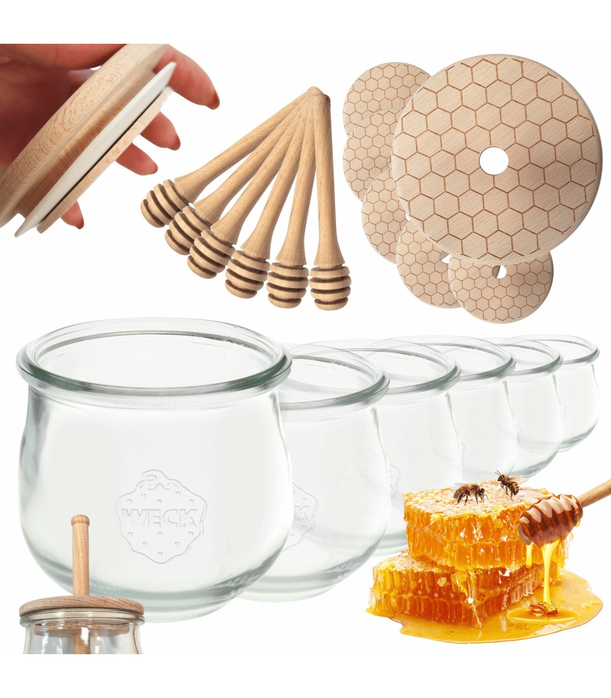 Słoiki na miód WECK zestaw słoików do miodu z nabierakiem 580ml W3 6szt EKO
