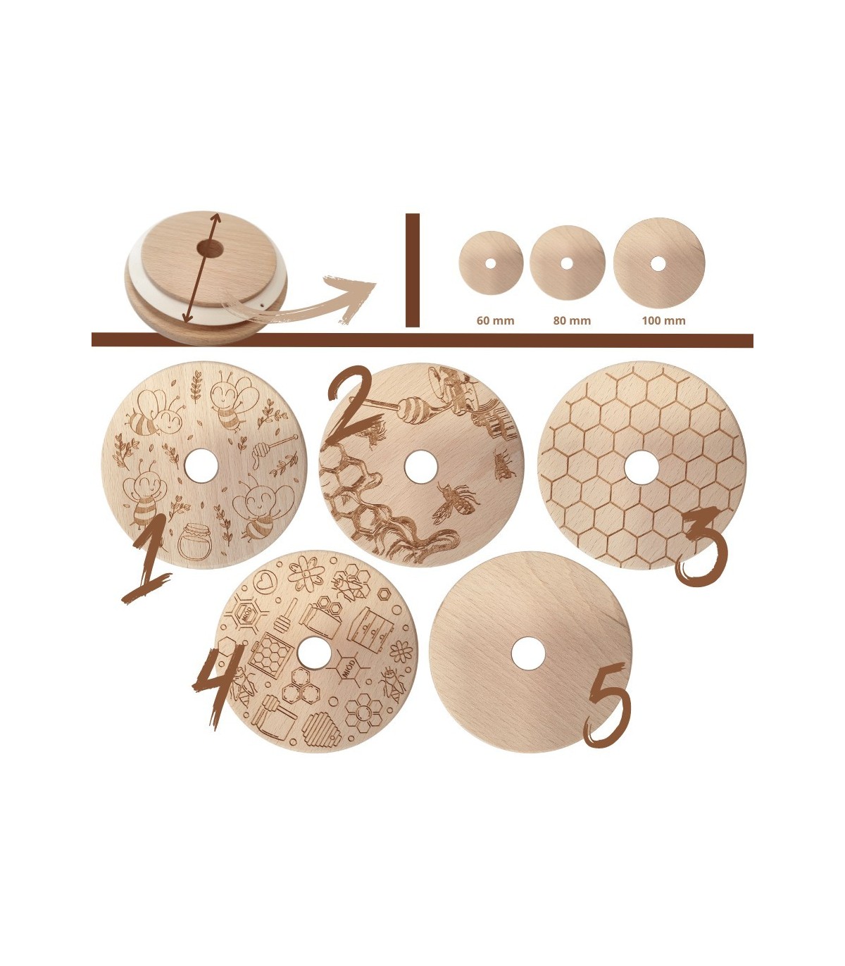 • Rodzaj dodatku: drewniane bukowe wieko nr 3 (plaster miodu) + nabierak do miodu