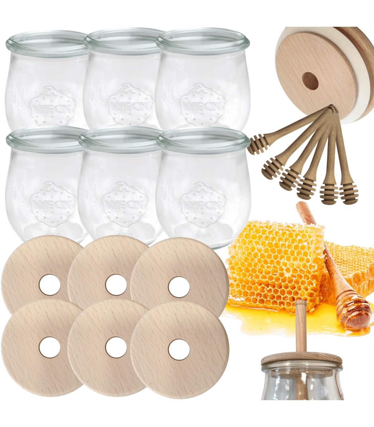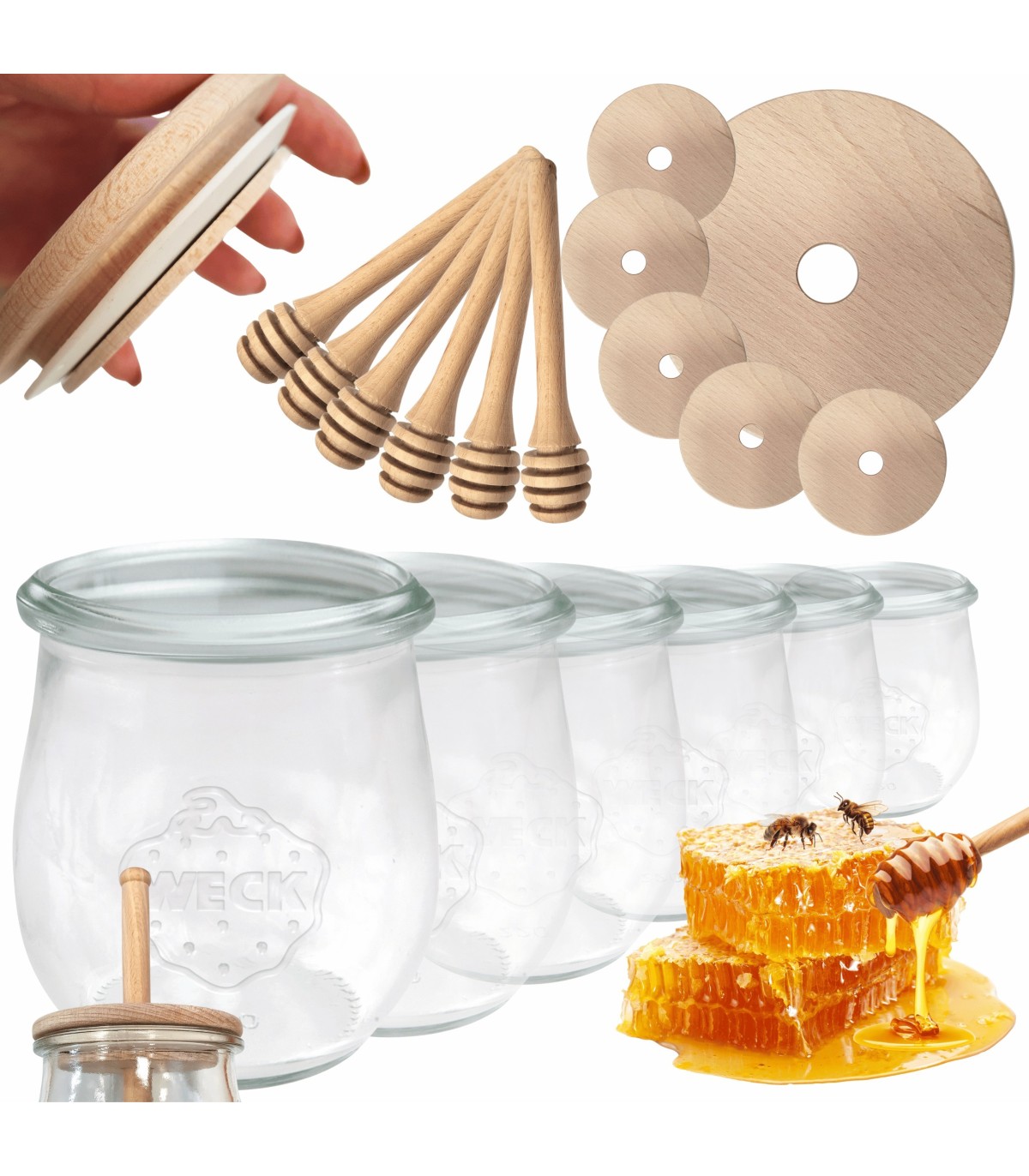 Produkt certyfikowany FSC®, co oznacza, że drewno, wykorzystane do wytworzenia tego produktu pochodzi z dobrze zarządzanych lasów z certyfikatem FSC. FSC pomaga dbać o lasy oraz ludzi i zwierzęta, dla których są one domem. Specyfikacja: – Kupując produkty firmy WECK stawiasz na wysoką jakość i wyspecjalizowaną technikę wykonania oferowanych produktów; – To ponad 120 lat tradycji, doświadczenia i badań oraz nieustannie udoskonalanej techniki produkcji przez najlepszych specjalistów; – Słoiki WECK kupujesz raz na lata, chroniąc w ten sposób środowisko oraz domowy budżet; Każde szklane naczynie ma wytłoczone logo firmy - logo które jest symbolem produktów wysokiej jakości, wytrzymałości i wieloletniej tradycji. Na innych ofertach zakupisz słoiki z innym wzorem drewnianego wieka. Dostepne aż 5 rodzajów nadruków. Dostepne średnice na słoiki: 60mm, 80mm, 100mm. Zachęcamy do odwiedzenia naszych innych ofert. Każde wieko posiada gumkę z otworem odpowietrzającym oraz otwór na nabierak do miodu. Materiał, z którego wykonano wieko i nabierak to drewno bukowe, certyfikowane. Produkty pakujemy solidnie i bezpiecznie. W kartony, które również są eko. Dlaczego warto kupować produkty oznaczone FSC?Bezkonkurencyjne słoiki do miodu WECK z pokrywką oraz nabierakiem do miodu (zestaw 6 szt) zaopatrzonymi certyfikatem FSC . Słoiki na lata, z ponad 120-letnią tradycją!
