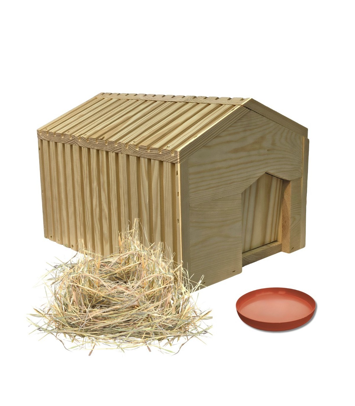 ⭐ Starannie zaprojektowany domek to idealne schronienie do zimowania oraz wychowania młodych. Drewniana konstrukcja zapewnia izolację od zimna i wilgoci, a daszek chroni przed deszczem i słońcem.