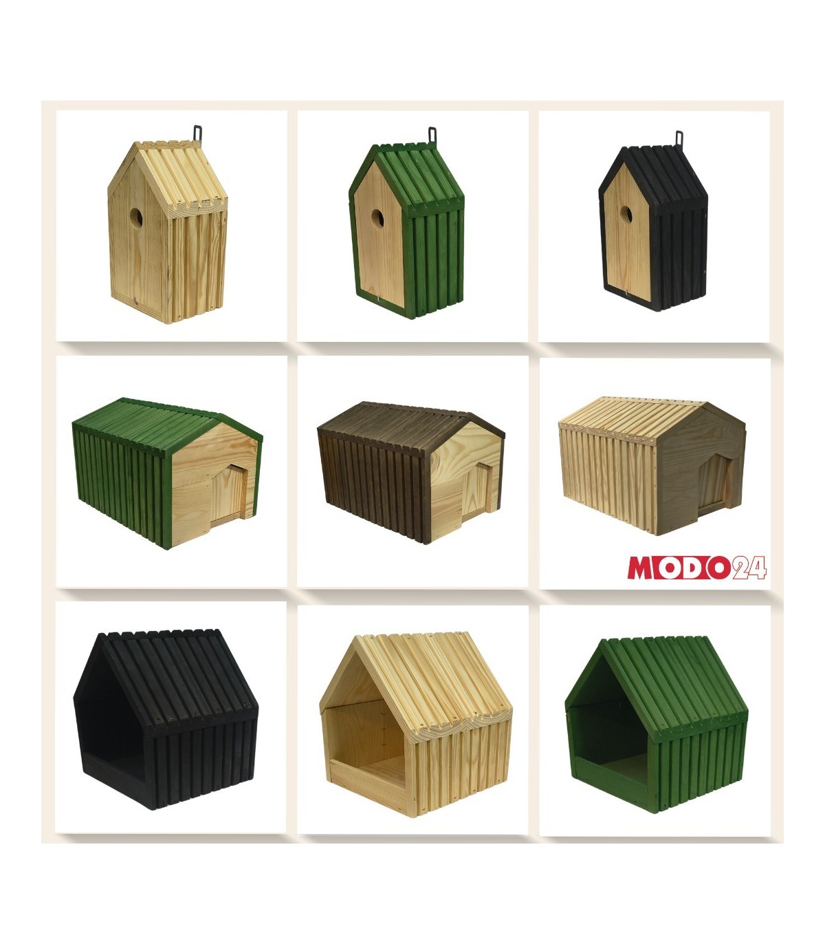 Nasze domki dla jeży dostępne są w kilku atrakcyjnych wariantach: naturalnym, zielonym, czarnym i brązowym.