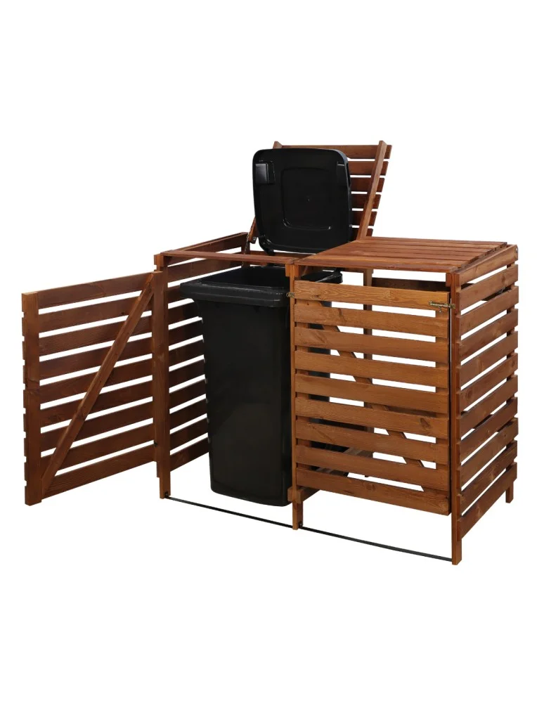 Podwójna brązowa obudowa na kosze na śmieci 120L