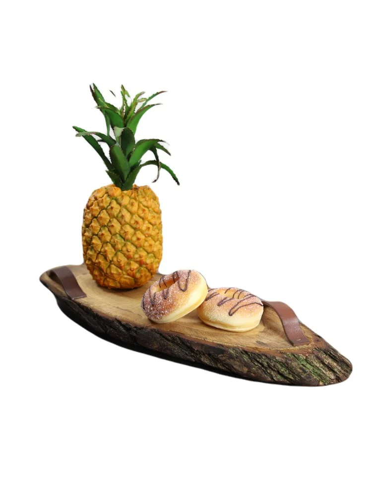 Eliptyczna Taca Dębowa ◍ 40-45 cm ◍ Uchwyty Z Naturalnej Skóry