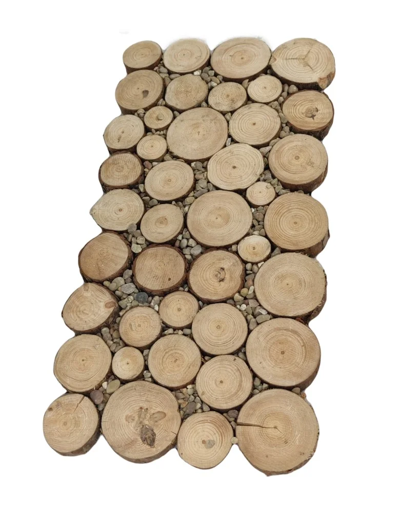 Panel ogrodowy na ścieżkę ▪ Okrągłe plastry drewna z korą