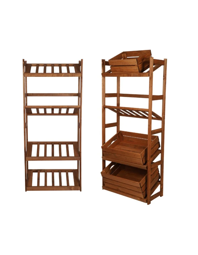 Regał Drewniany LSR – 4 półki na skrzynki – brązowy